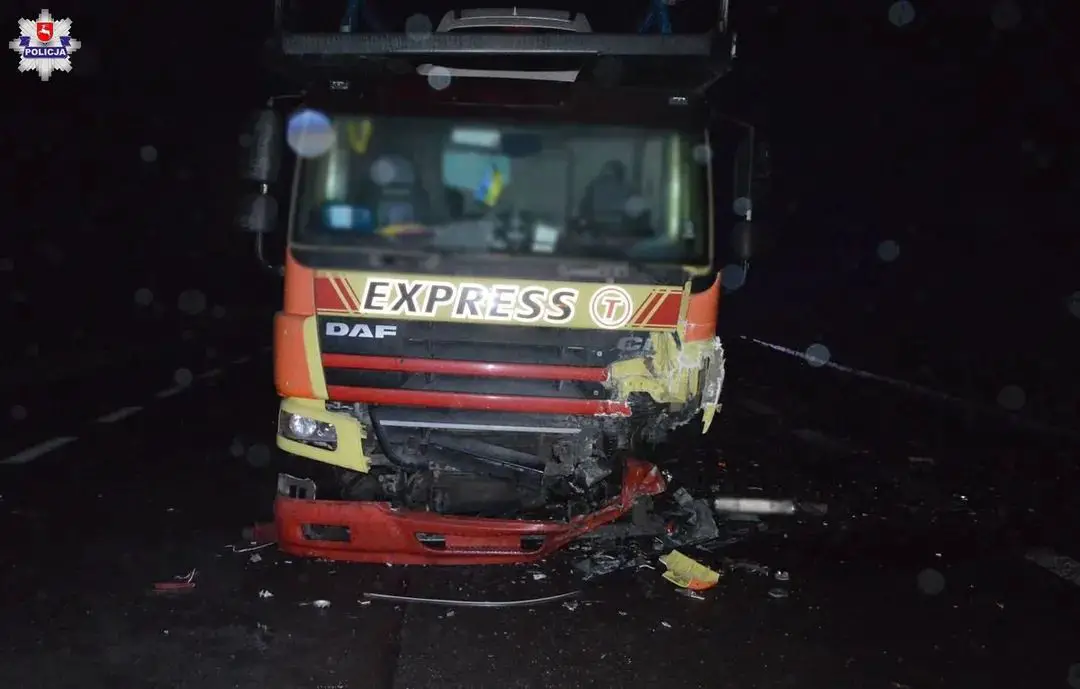 BMW po odbiciu się od Mercedesa następnie czołowo zderzyło się z jadącym w kierunku Dorohuska ciężarowym Dafem.