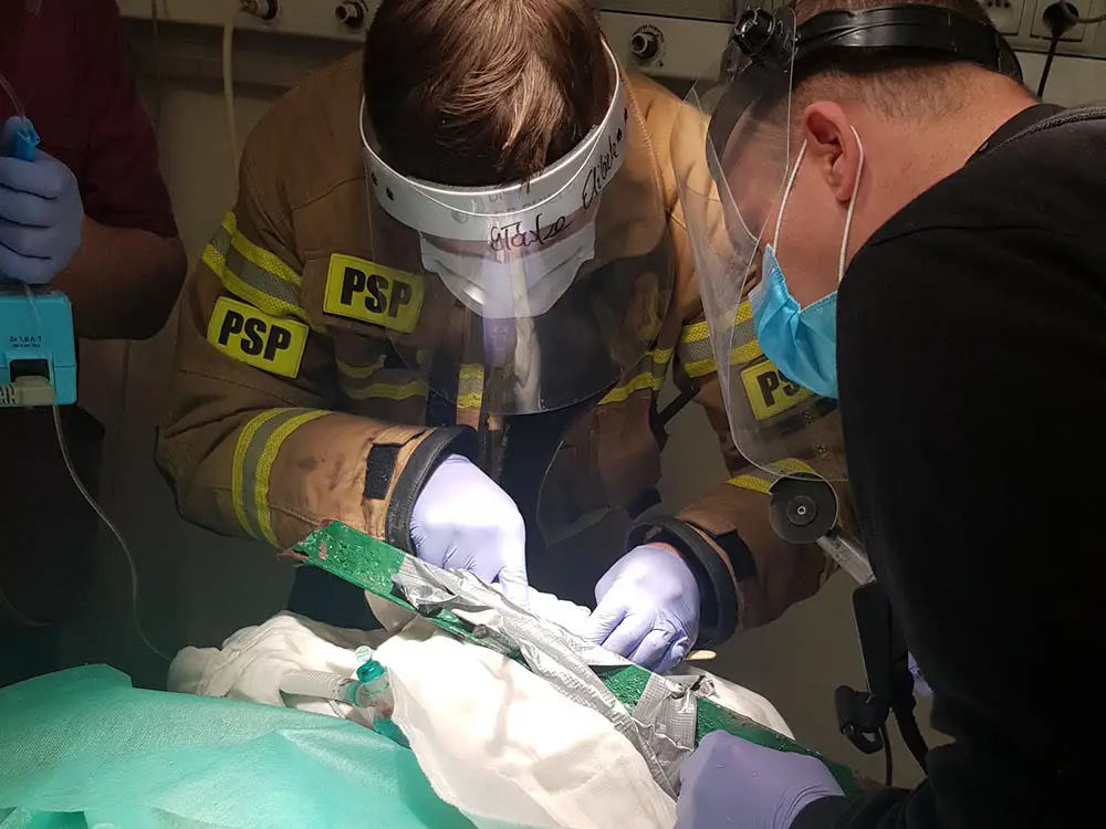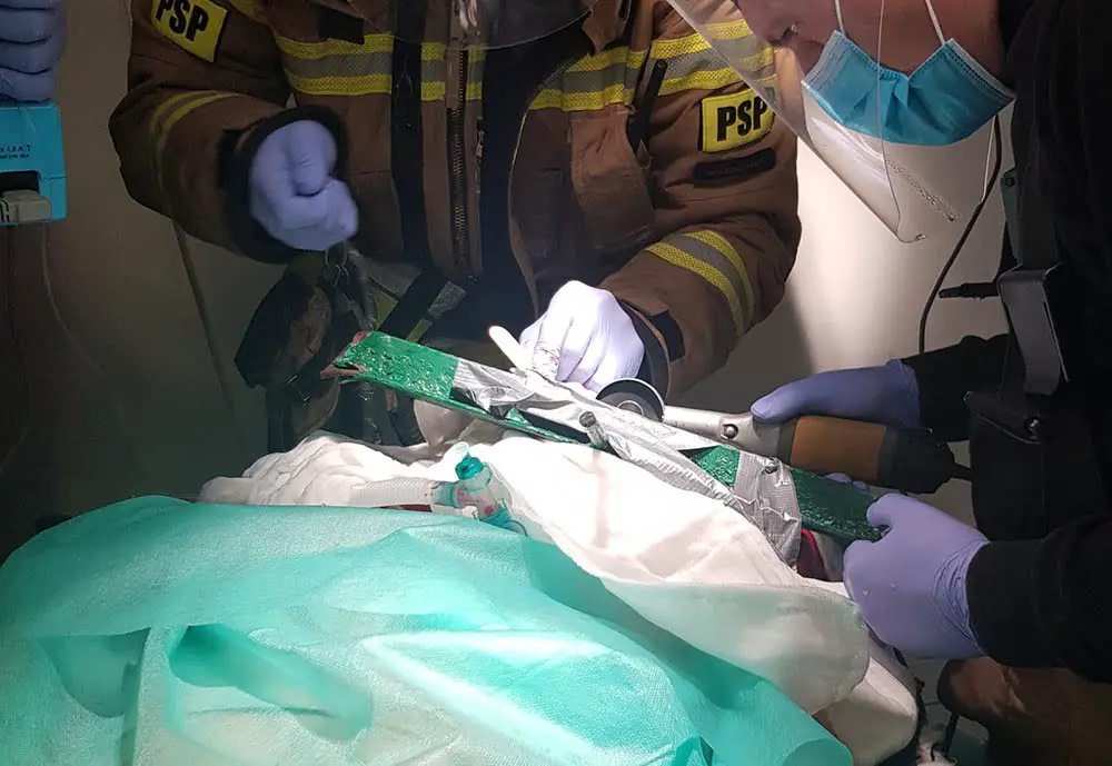 Lekarze z powodu pręta wystającego z oka 30-latka nie byli w stanie diagnozować motocyklisty. Strażacy piłą oscylacyjną przycięli wystający z oka pręt.