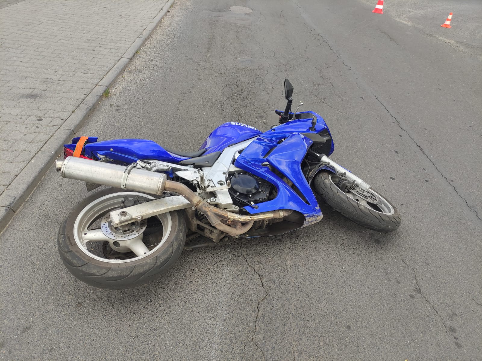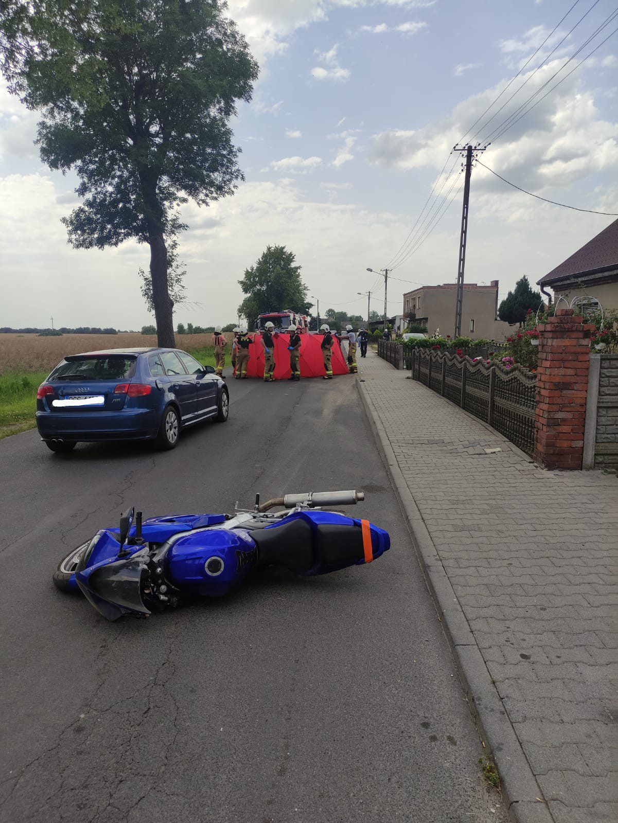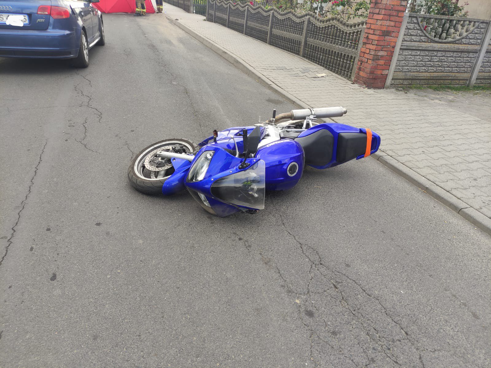 Ze wstępnych ustaleń policjantów pracujących na miejscu zdarzenia wynika, że kierujący motocyklem Suzuki 17 letni mężczyzna na prostym odcinku drogi uderzył w krawężnik w wyniku czego stracił panowanie nad pojazdem, przewrócił się i uderzył głową o chodnik mówi dla portalu wlkp112.pl Monika Curyk, z gostyńskiej policji
