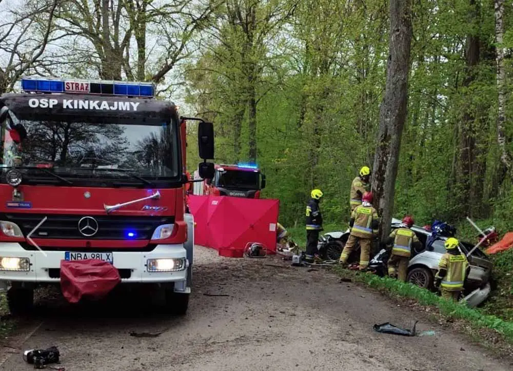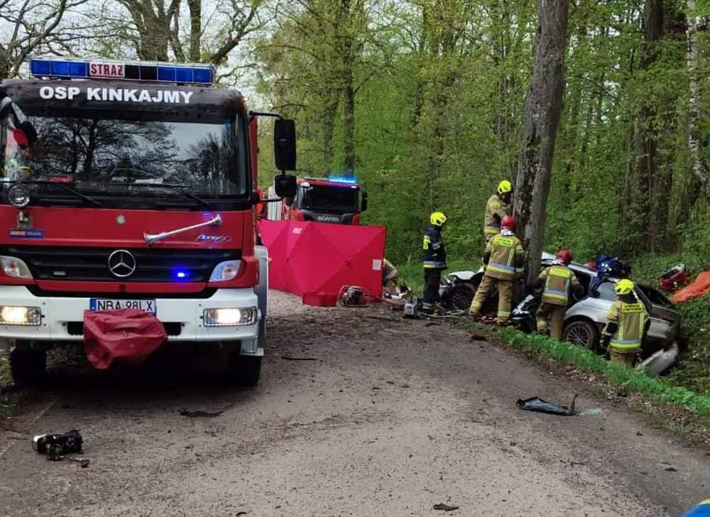 Do tragicznego wypadku doszło w sobotę, 13 kwietnia, w okolicach Galinek pod Bartoszycami. Kierujący BMW, z nieustalonych dotąd przyczyn, zjechał z drogi i z ogromną uderzył w drzewo. BMW owinęło się na pniu, a jego elementy rozpadły w promieniu wielu metrów.