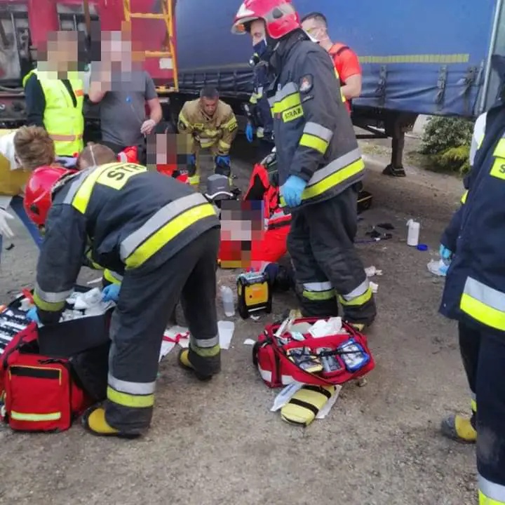 W tej chwili rannemu w wypadku 28-latkowi z gminy Miejska Górka na miejscu pomocy udzielają załoga pogotowia ratunkowego oraz strażacy.