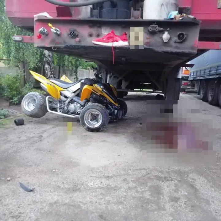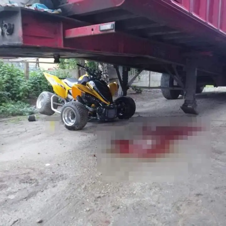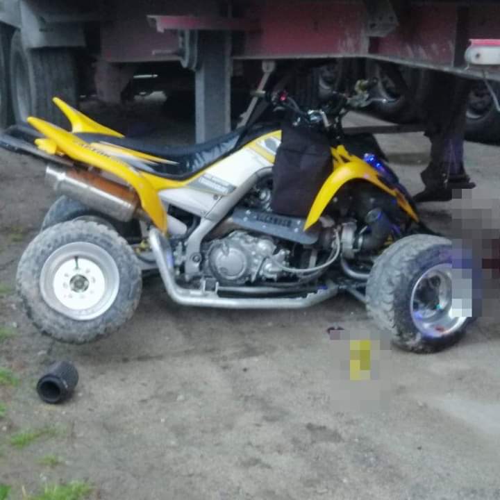 Wypadek w Konarach. Z nieoficjalnych informacji wynika, że kierujący quadem uderzył w naczepę ciężarówki.