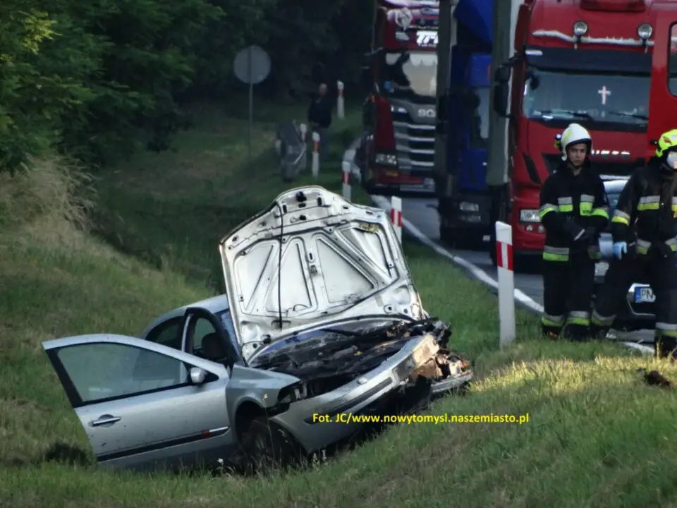 Siła zderzenia obydwu pojazdów była bardzo potężna, obydwa pojazdy wpadły do głębokiego rowu w odległości stu metrów od siebie. Niestety na skutek zderzenia jeden z kierowców został uwięziony w pojeździe. Przybyli na miejsce strażacy za pomocą specjalistycznego sprzętu hydraulicznego musieli uwolnić zakleszczonego mężczyznę z wraka pojazdu.