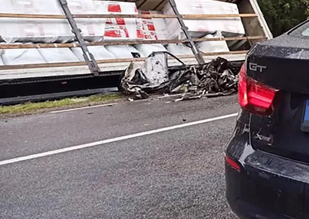Ratownicy, którzy dojechali na miejsce wypadku zobaczyli kompletnie zmiażdżony samochód osobowy, który zderzył się z ciężarówką. Z samochodu dosłownie nic nie zostało.