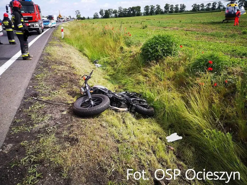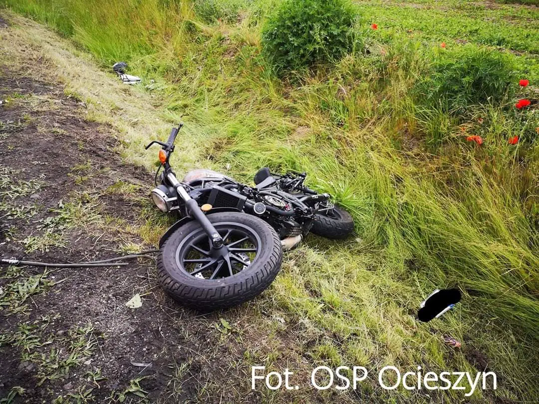 Do śmiertelnego wypadku doszło w sobotę, 6 czerwca, w Ocieszynie. Toyota uderzyła w motocyklistę. Mężczyzna kierujący motoru zmarł na stole operacyjnym. Pasażerka motoru straciła nogę. Trwa walka o życie kobiety.