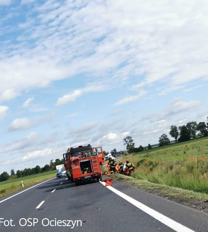 Z pierwszych informacji wynika, że kierujący toyotą nagle zjechał na przeciwległy pas ruch. Tam uderzył w prawidłowo jadący motocykl. Siła uderzenia była duża. Na miejsce wypadku szybko dotarły wozy straży pożarnej z Obornik oraz OSP Ocieszyn i policja. Strażacy zaczęli walkę o życie osób poszkodowanych w wypadku. Zabezpieczyli też miejsce zdarzenia. Dojechały karetki pogotowia ratunkowego oraz wylądował śmigłowiec lotniczego pogotowia ratunkowego.