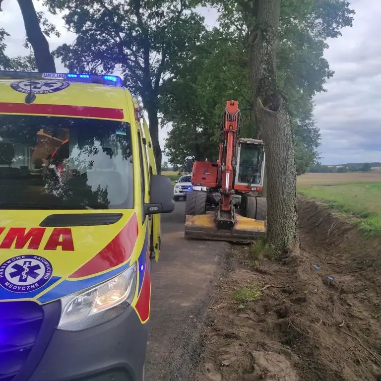 Mężczyzna został przygnieciony przez koparkę. Na miejsce wezwano śmigłowiec Lotniczego Pogotowia Ratunkowego.