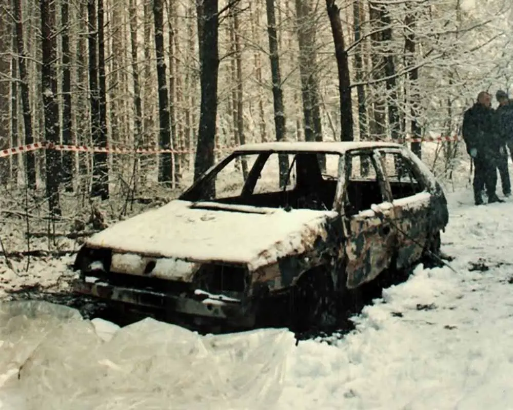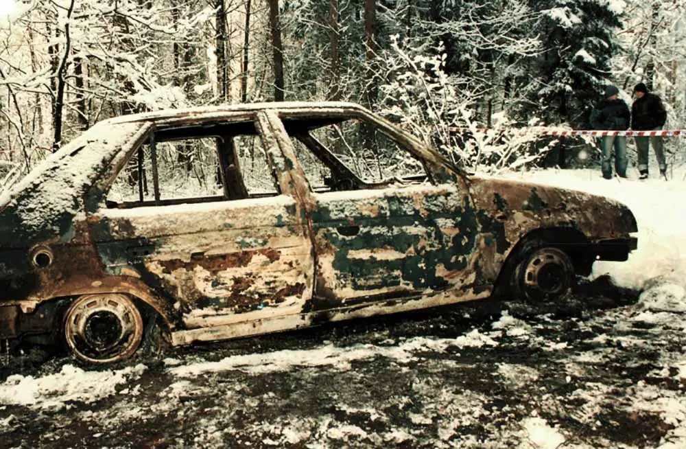 Samochód stał na leśnej drodze. Biegli nie stwierdzili żadnych uszkodzeń albo zwarcia instalacji elektrycznej, które mogły spowodować pożar. Doszli jednak do zaskakujących wniosków, że szyby auta były opuszczone, pożar wybuchł w przedniej części kabiny. Stwierdzili także, że do podpalenia mogła być użyta substancja łatwopalna. Ustalono również że jedna z ofiar w chwili pożaru jeszcze żyła.