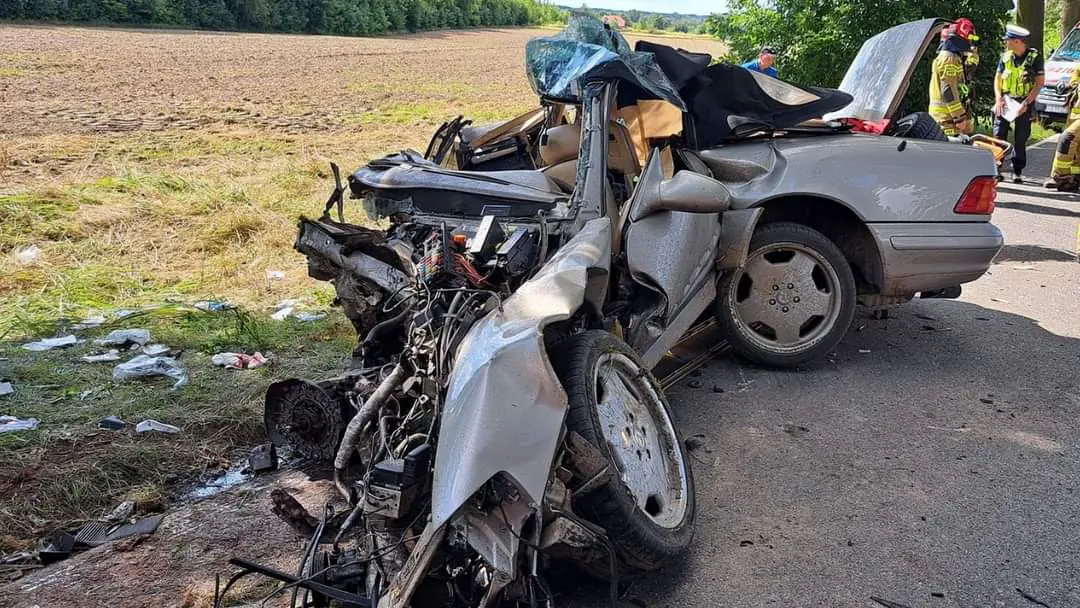 Do tego nieprawdopodobnego wypadku doszło 10 sierpnia około godziny dziesiątej. 47-latek kierujący Mercedesem dosłownie wbił się autem w drzewo. W ciężkim stanie zabrano go do szpitala.