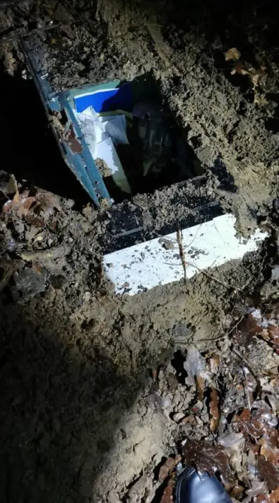 Dzień po włamaniu funkcjonariusze zatrzymali 33-letniego mieszkańca gminy Białośliwie. Okazało się, że mężczyzna chcąc ukryć metalowy sejf przeniósł go z terenu firmy do samochodu, a następnie wywiózł do pobliskiego lasu. Tam skarbiec został zakopany. Po zatrzymaniu sprawca wskazał mundurowym miejsce ukrycia metalowego sejfu, który udało mu się wcześniej otworzyć. Policjanci znaleźli w nim dokumenty oraz niewielką ilość pieniędzy.
