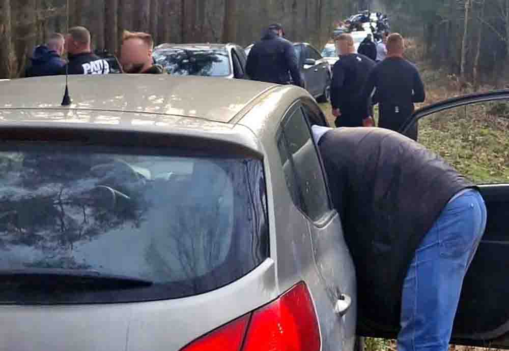 Po przyjeździe na miejsce, policjanci w Pszczynie natrafili w rejonie ul. Pszczyńskiej w Suszcu, na jednej z leśnych dróg, na zaparkowane samochody i stojących obok nich mężczyzn. Część z nich, na widok zbliżających się radiowozów, pospiesznie odjechała przez podmokłe, nieutwardzone drogi.