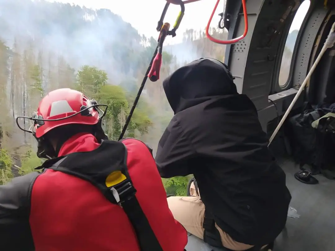 Polska grupa już od rana, razem z dwoma czeskimi Sokołami, walczy z żywiołem. Prowadzimy działania gaśnicze w okolicach miejscowości Hrensko.