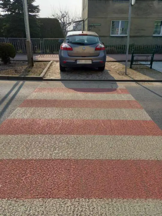 Przejście jest dla pieszych – więc żadnego samochodu tam nie powinno być. Jednak jak widzimy na załączonym obrazku – jest inaczej. Nasz mistrz parkowania chyba nie wie, że za takie parkowanie grozi mandat – możemy przeczytać na portalu GrodziskNaszemiasto.pl