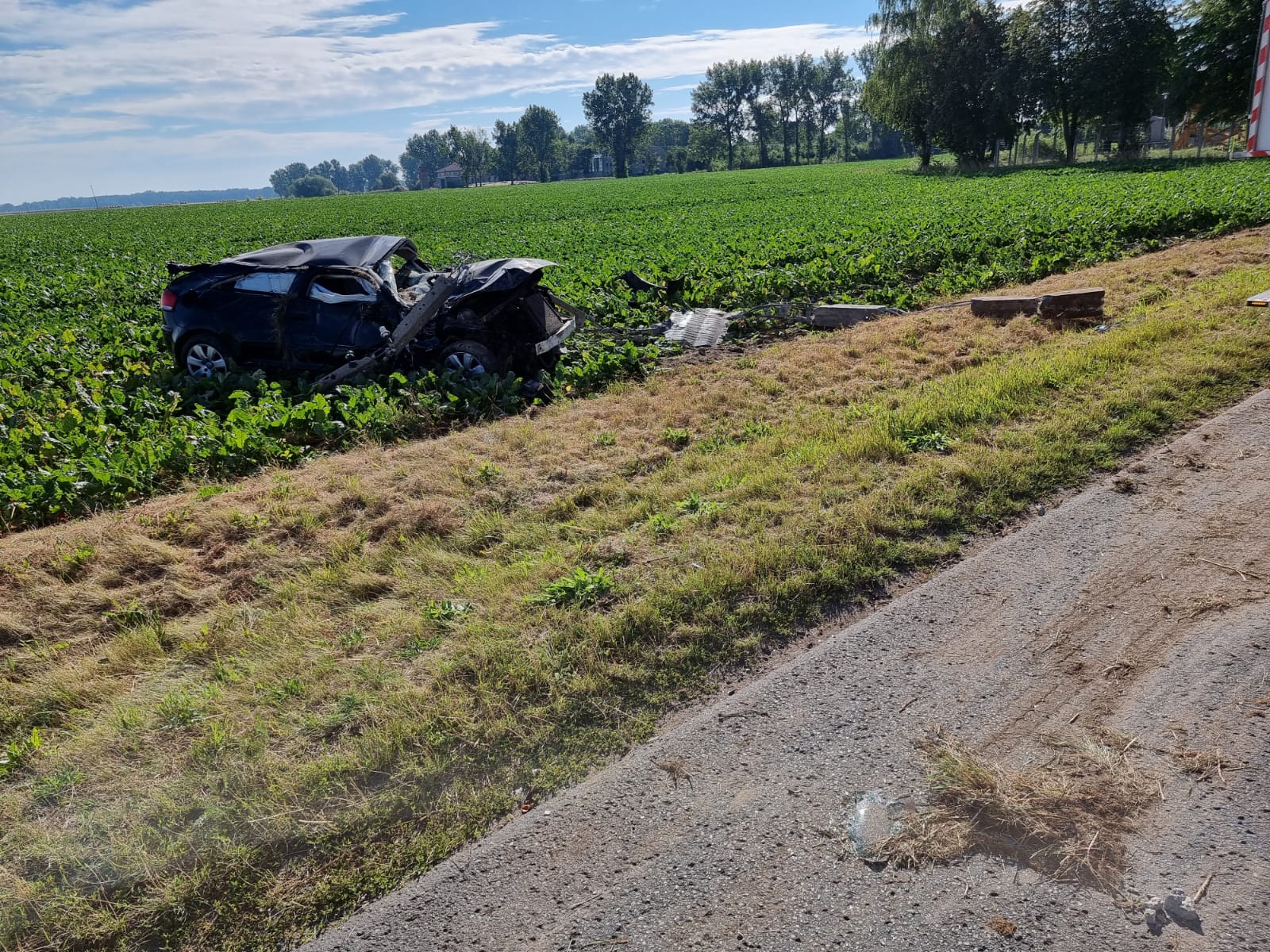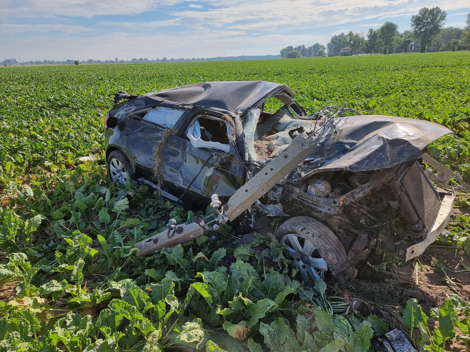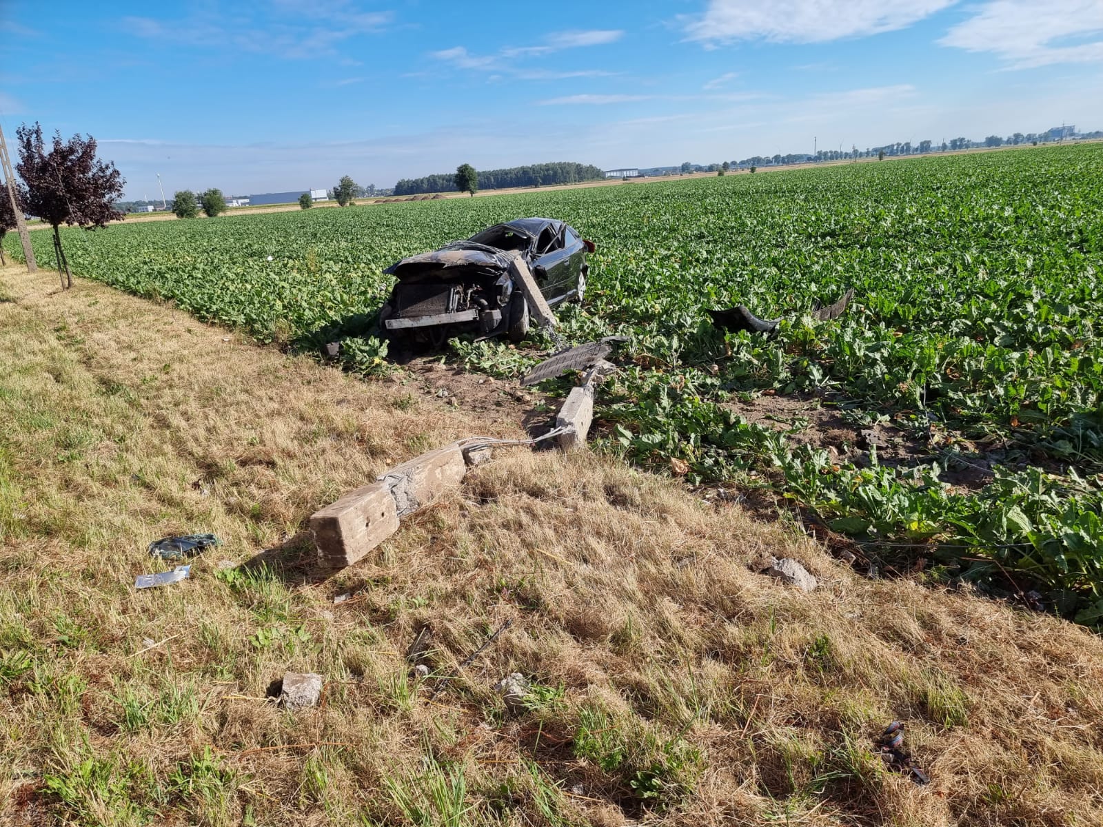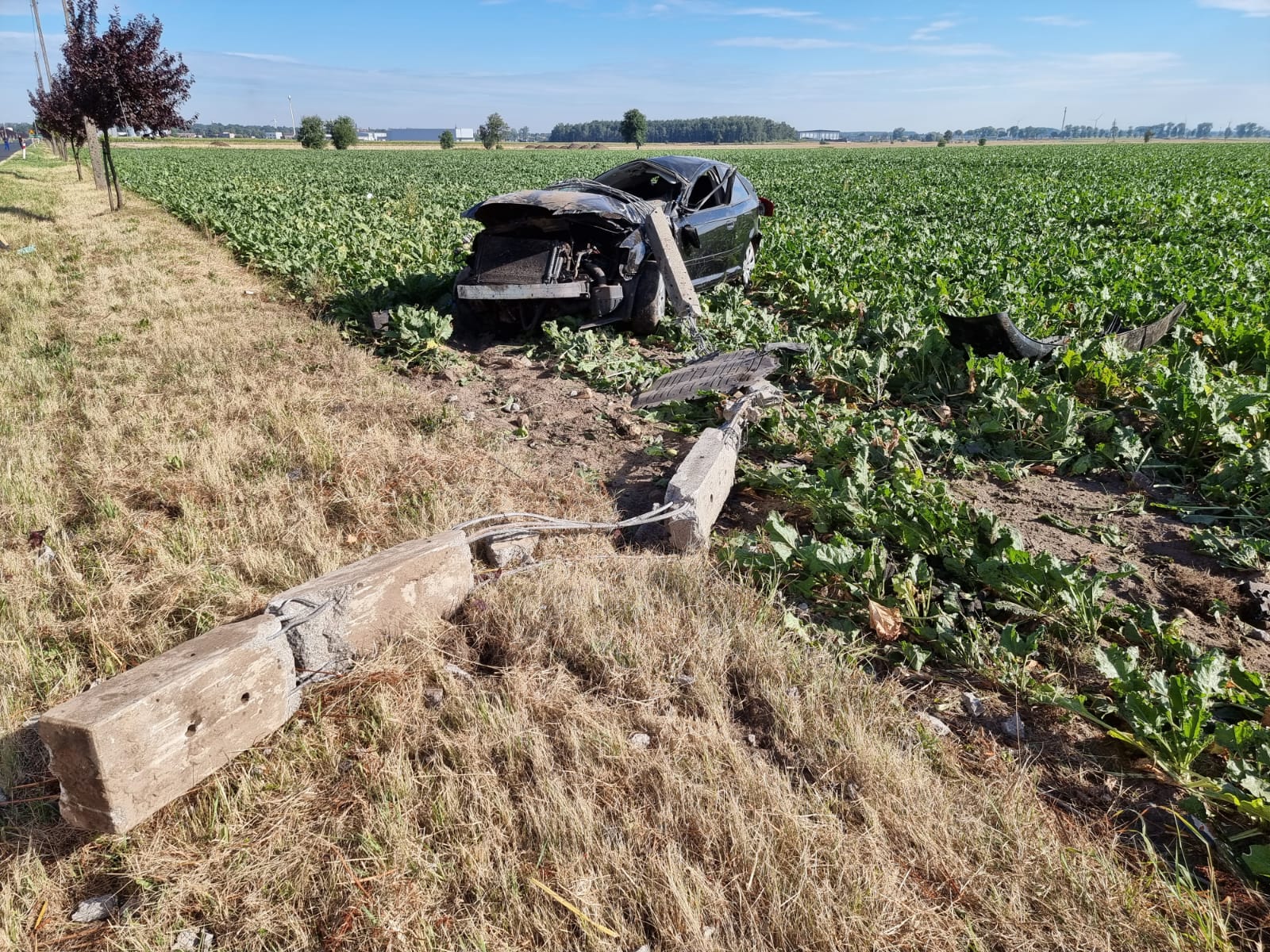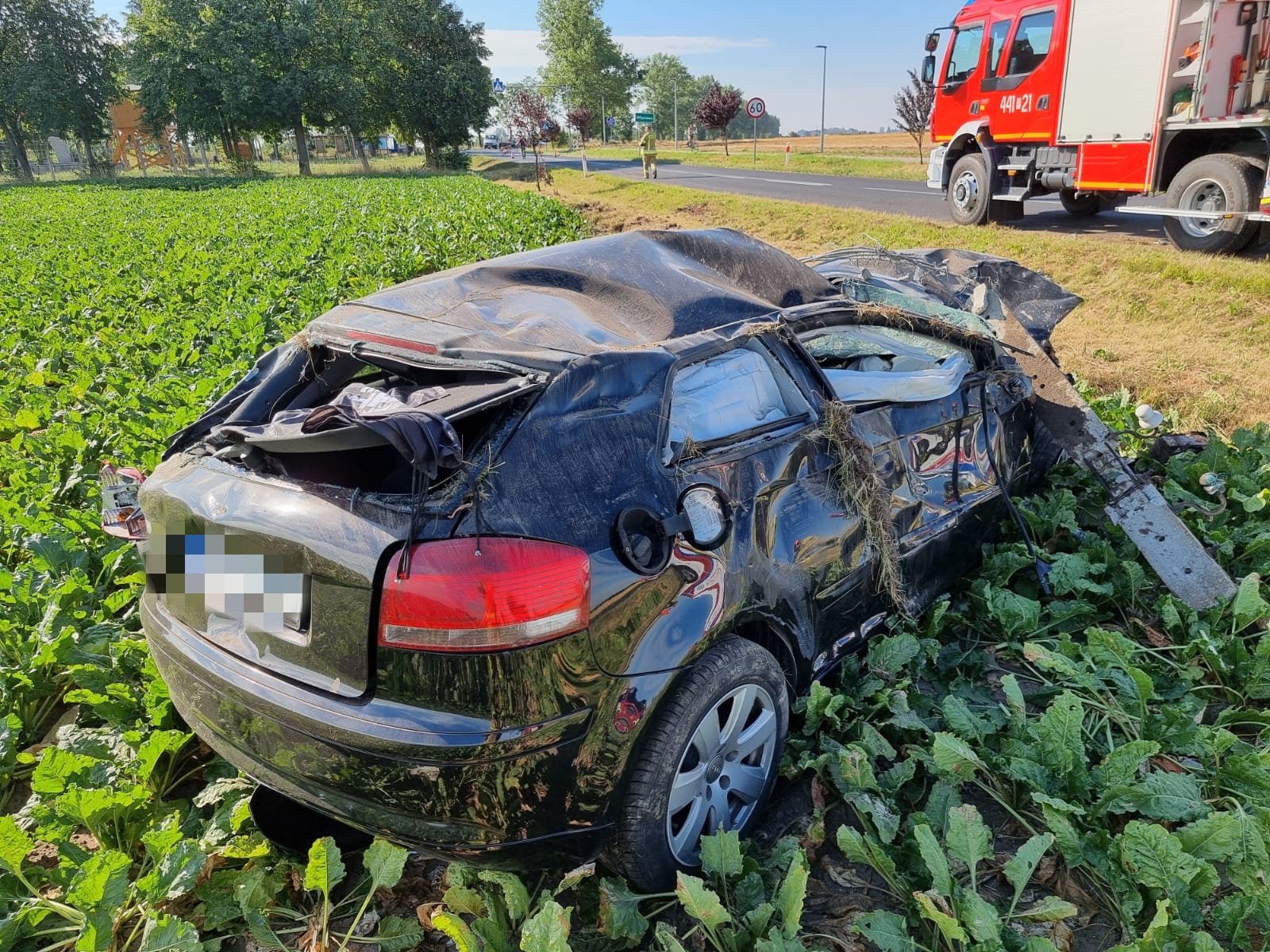 Wszystko wydarzyło się w środę w 3 sierpnia w miejscowości Młyniewo. Kierowane przez młodego mężczyznę Audi uderzyło w słup energetyczny i dachowało.