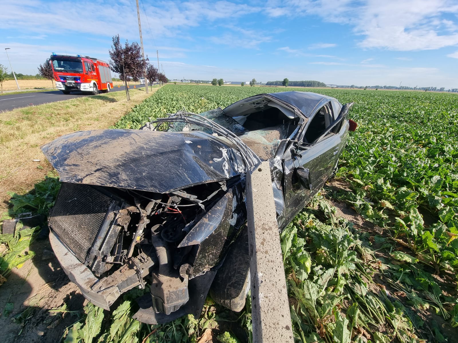 W momencie dojazdu strażaków na miejsce zdarzenia kierowca znajdował się poza pojazdem. Był przytomny – informuje mł. bryg. Marcin Nowak z grodziskiej straży pożarnej