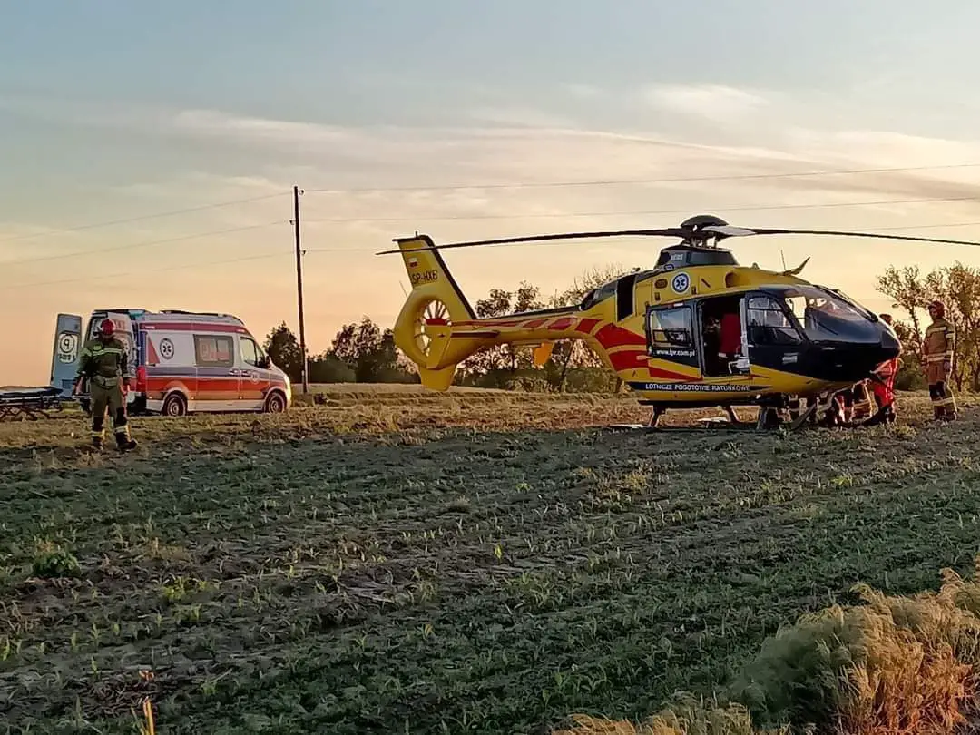 Konieczne okazało się wezwanie Śmigłowca Lotniczego Pogotowia Ratunkowego, który bardzo szybko przetransportował przytomnego mężczyznę drogą lotniczą do szpitala.