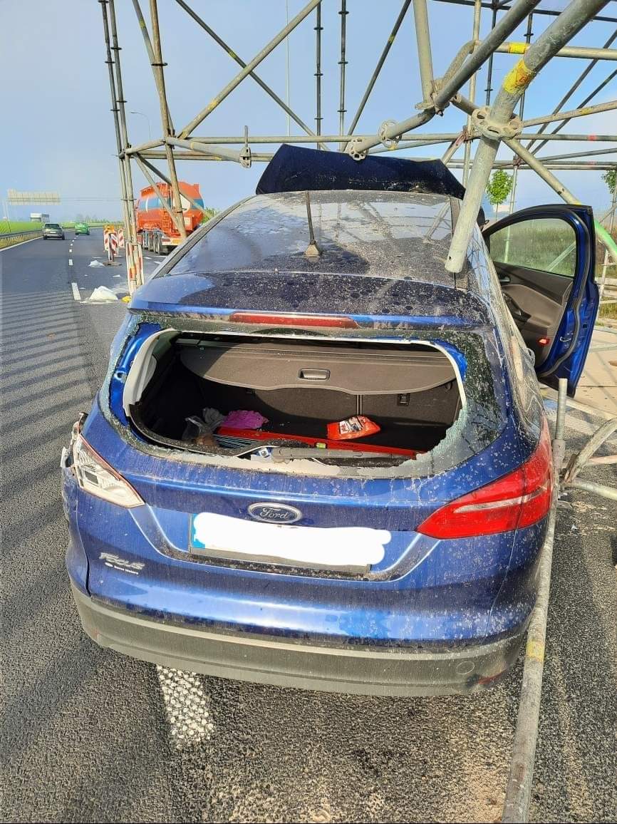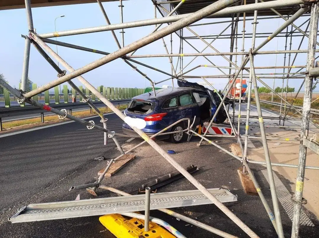 Kierującym samochodem osobowym marki Ford Focus 50-letni mieszkaniec Żydowa jadąc od strony Gniezna nie ustąpił pierwszeństwa kierującemu ciągnikiem siodłowym z naczepą uderzając w jego bok a następnie uderzył w rusztowanie znajdujące się na prawym pasie ruchu.