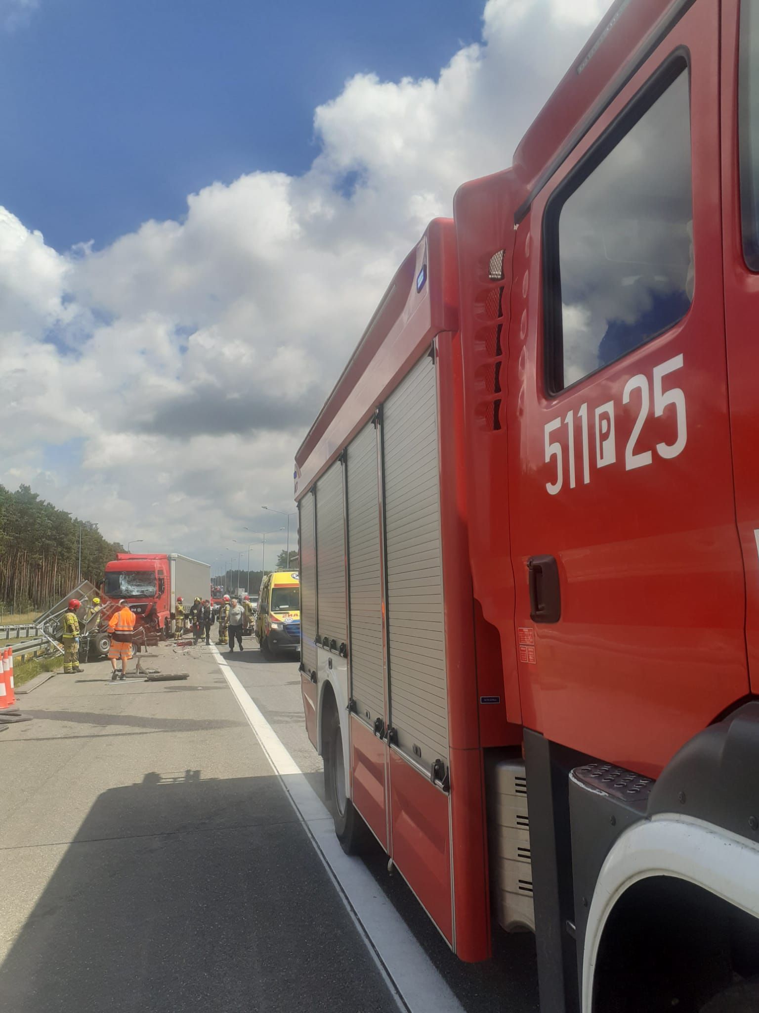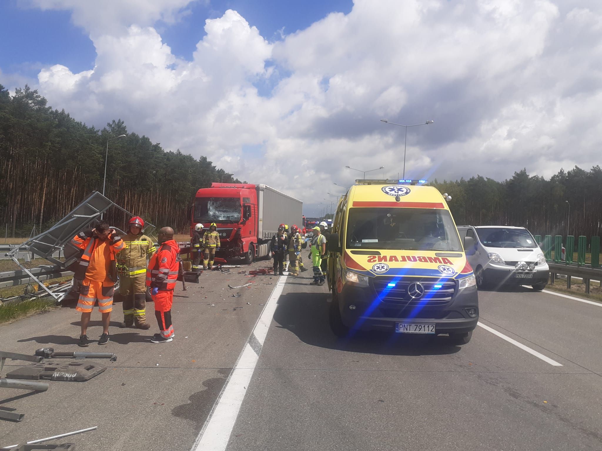 W dniu 21.06.2022 roku o godz. 12:37 do Stanowiska Kierowania Komendanta Powiatowego PSP w Nowym Tomyślu wpłynęło zgłoszenie o wypadku na 108 km autostrady A2 w kierunku Świecka, gdzie TIR uderzył w przyczepę firmy prowadzącej prace na autostradzie.