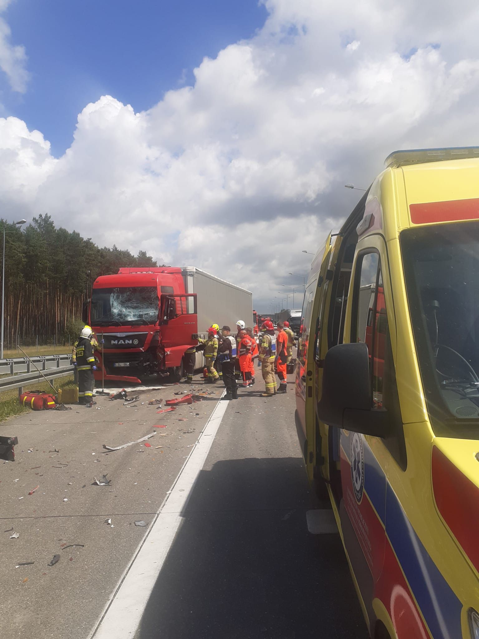 W wyniku zdarzenia poszkodowane zostały 2 osoby – kierujące pojazdami. Osoby nie były uwięzione w pojazdach, a ruch odbywał się pasem lewym (szybkim). Na miejscu obecne służby autostradowe, które zabezpieczały teren. Działania strażaków polegały na zabezpieczeniu miejsca zdarzenia, udzieleniu kwalifikowanej pierwszej pomocy poszkodowanym (opatrzenie rany głowy, wsparcie psychiczne), neutralizacji płynów eksploatacyjnych oraz rozłączeniu akumulatorów w pojazdach.