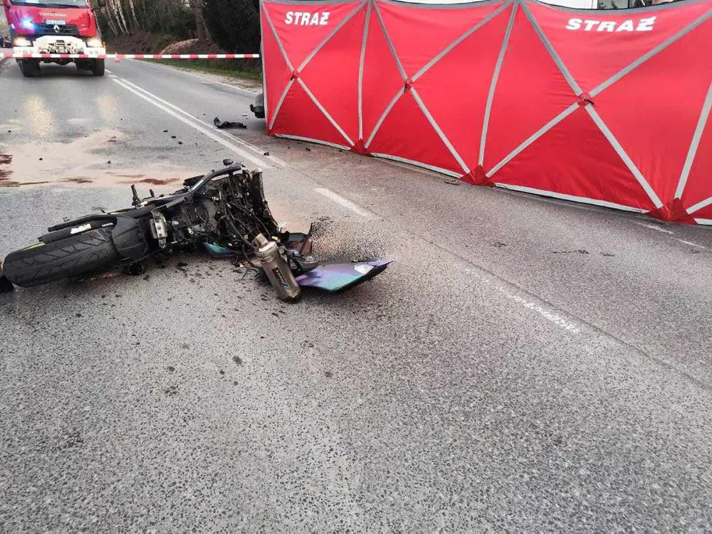 Wszystko wydarzyło się późnym popołudniem. Z ustaleń policjantów, wynika, że w skutek zajechania drogi przez kierowcę samochodu dostawczego, w jego bok uderzył jadący motocyklista. Siła uderzenia musiała być potężna, ponieważ motocykl suzuki rozpadł się na dwie części.