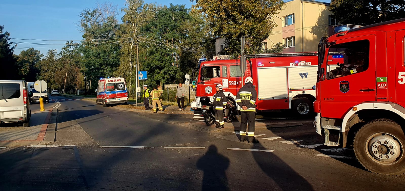 Po dojeździe na miejsce zdarzenia strażacy zastali skuter, który uderzył w bok samochodu osobowego. Kierujący pojazdami znajdowali się na poboczu drogi.