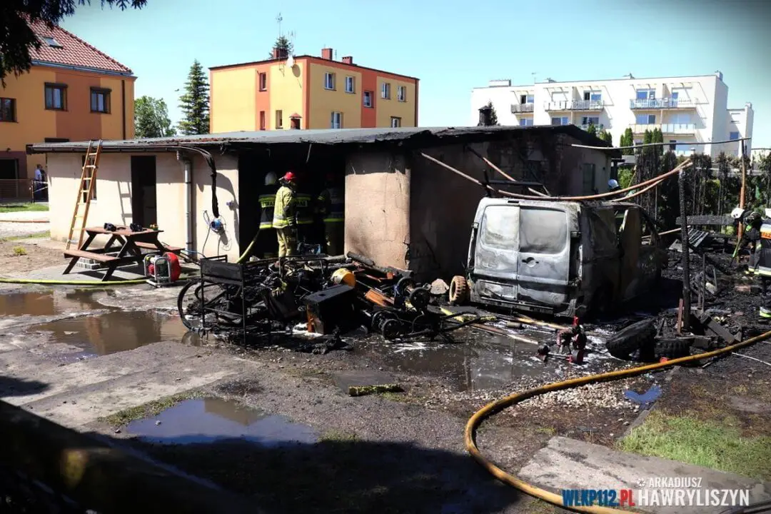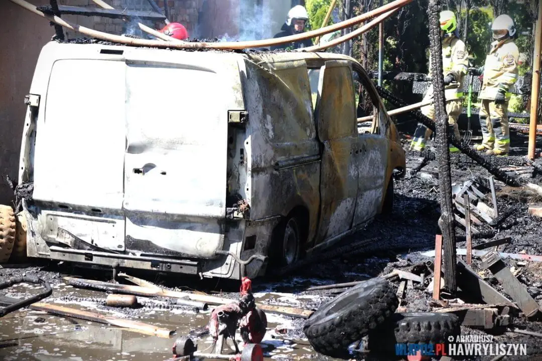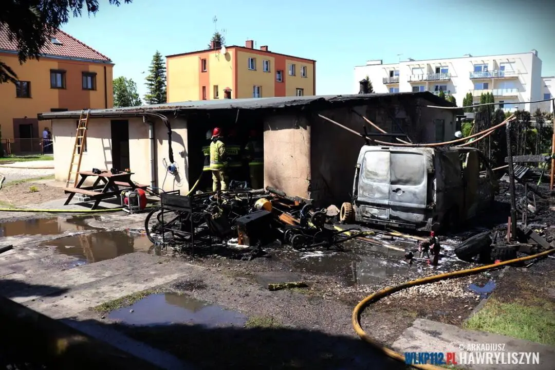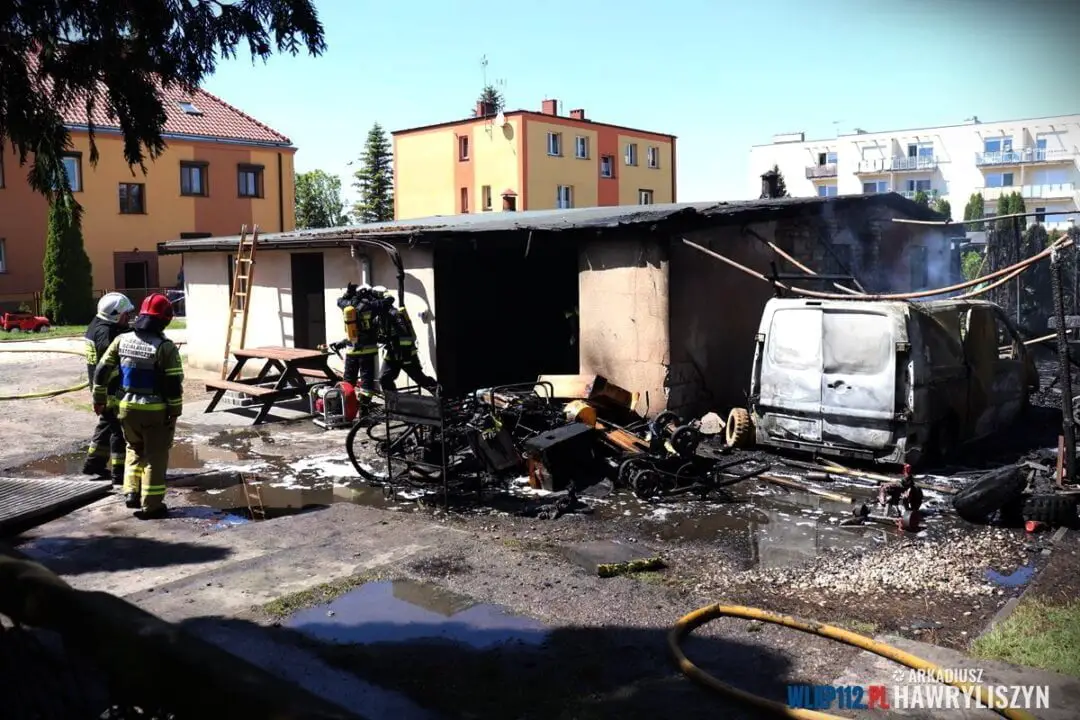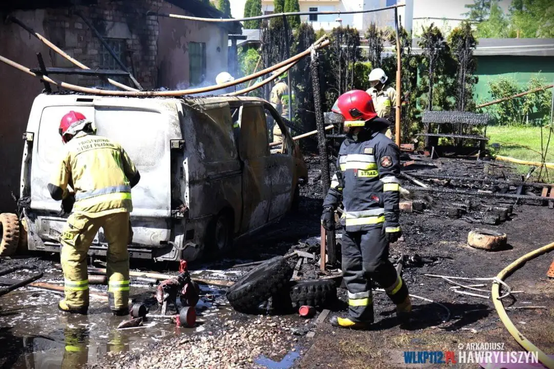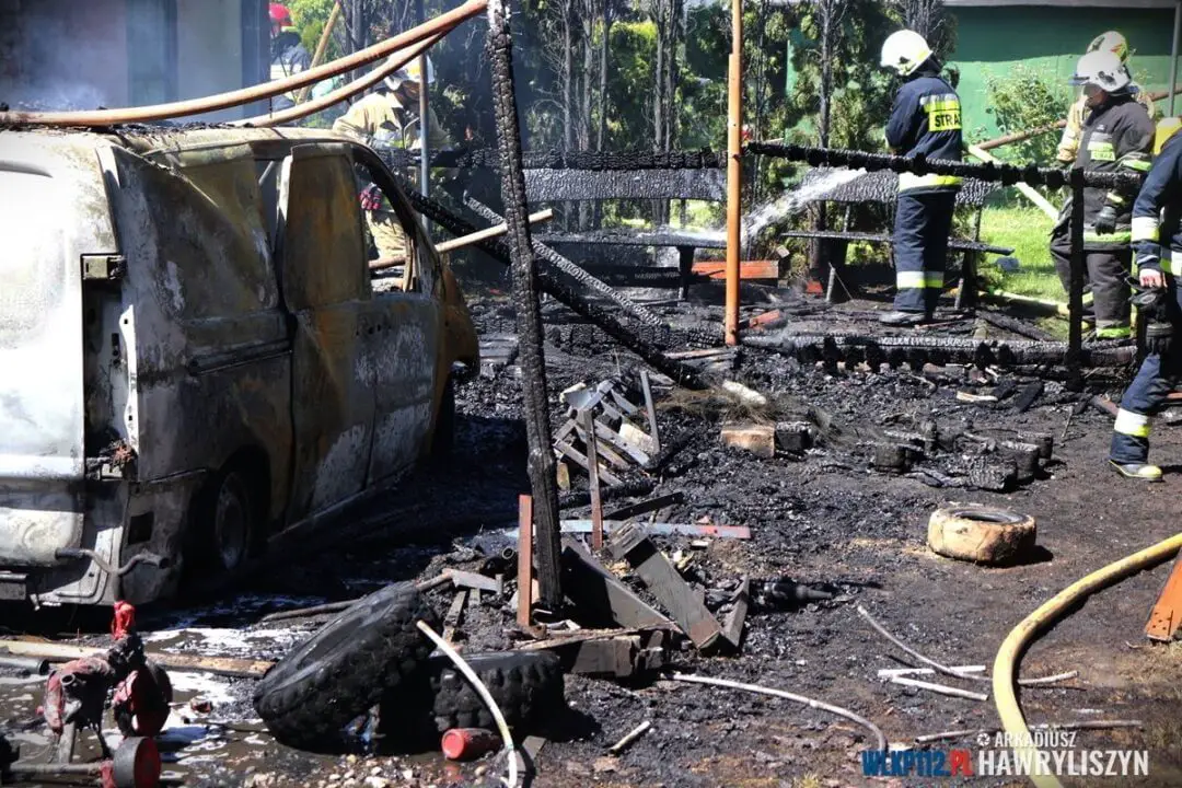 W wyniku pożaru całkowitemu spaleniu uległa wiata oraz zaparkowany pod nią samochód dostawczy oraz przylegający jeden boks garażowy z wyposażeniem. Akcja gaśnicza została zakończona po ponad dwóch godzinach działań. Według wstępnych ustaleń, prawdopodobną przyczyną powstania pożaru mogło być zwarcie instalacji elektrycznej w garażowanym pod wiatą pojeździe.