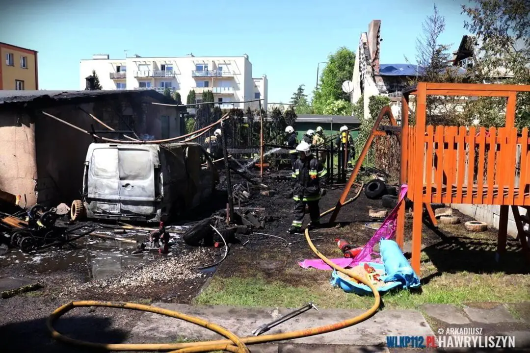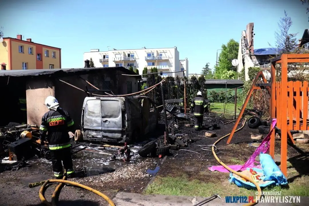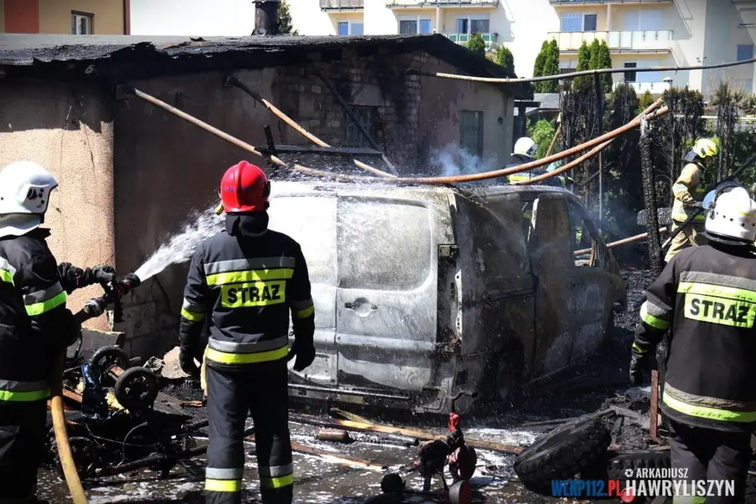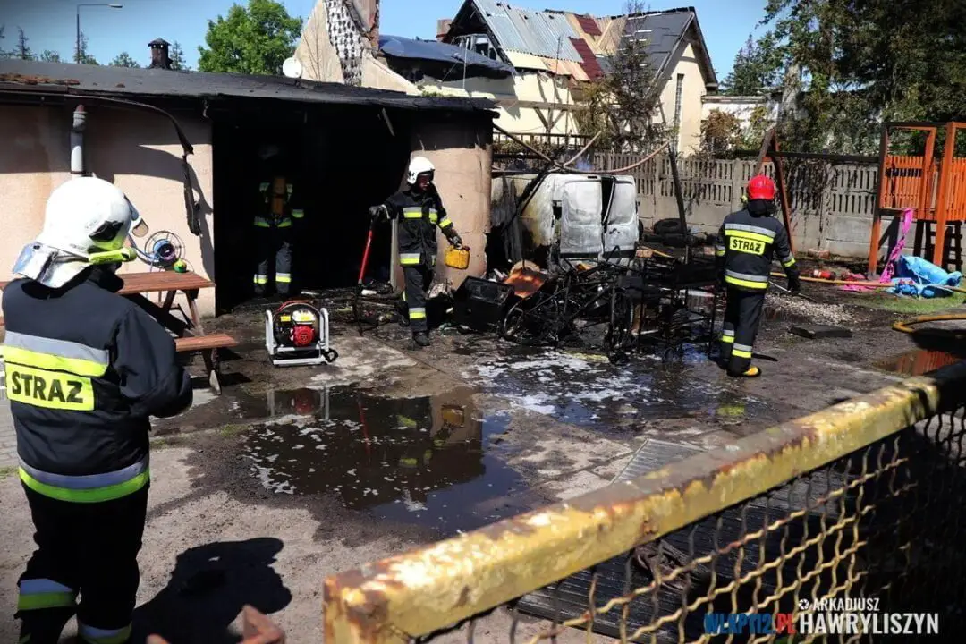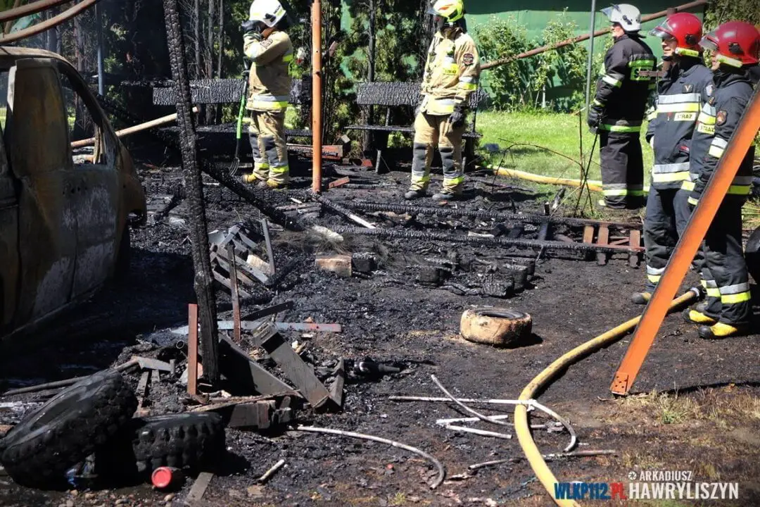 W wyniku pożaru całkowitemu spaleniu uległa wiata oraz zaparkowany pod nią samochód dostawczy oraz przylegający jeden boks garażowy z wyposażeniem. Akcja gaśnicza została zakończona po ponad dwóch godzinach działań. Według wstępnych ustaleń, prawdopodobną przyczyną powstania pożaru mogło być zwarcie instalacji elektrycznej w garażowanym pod wiatą pojeździe.