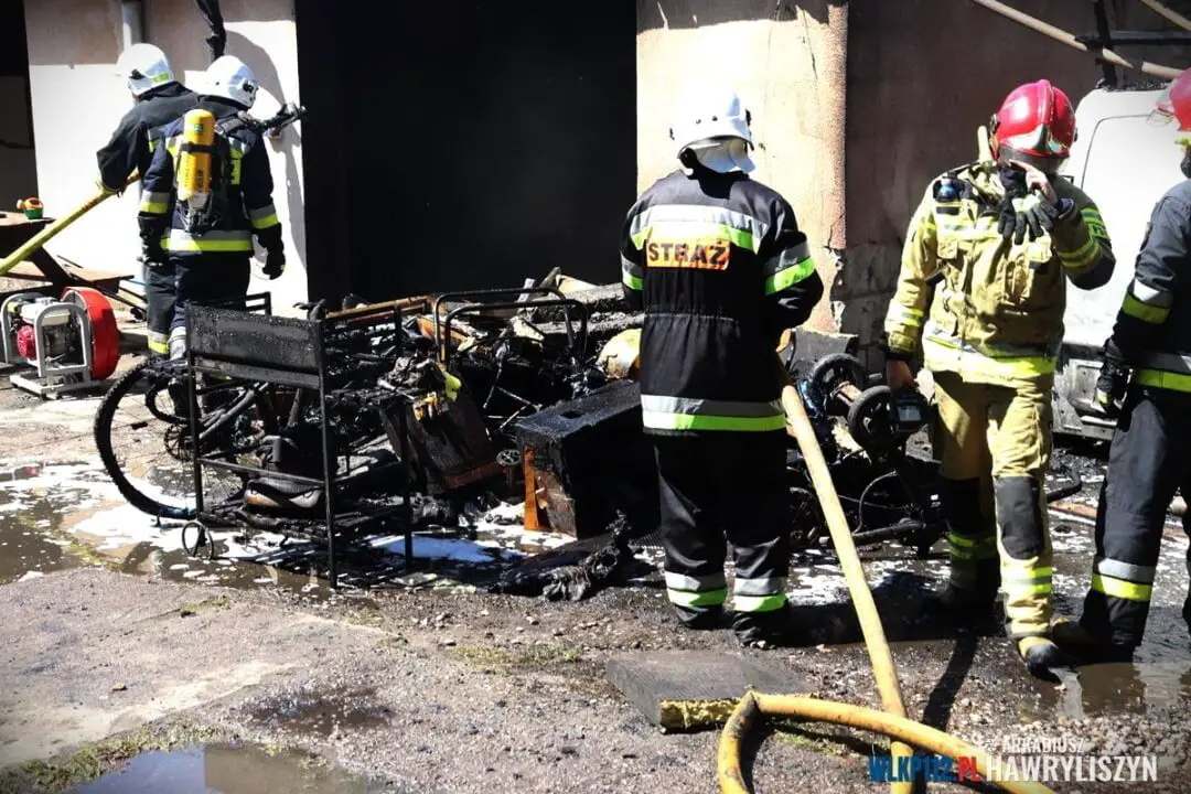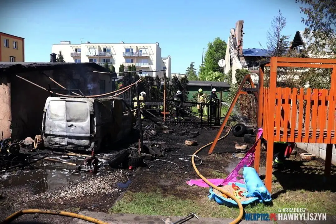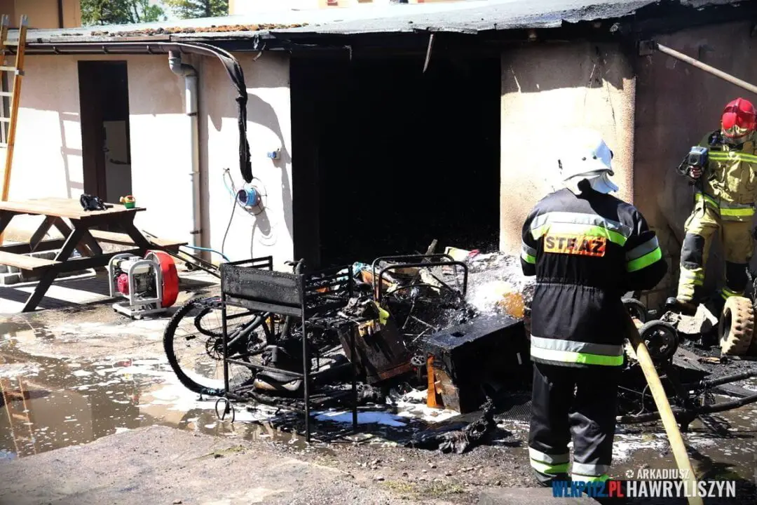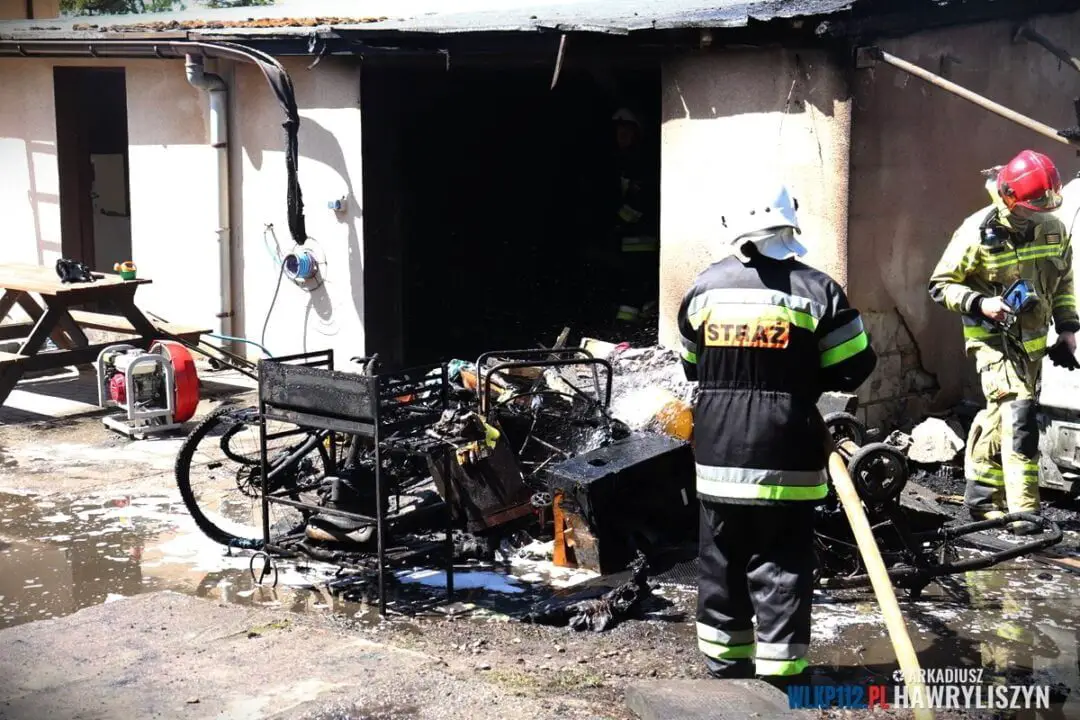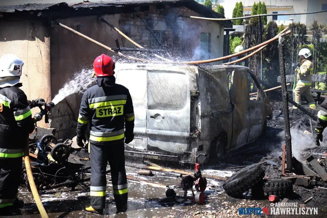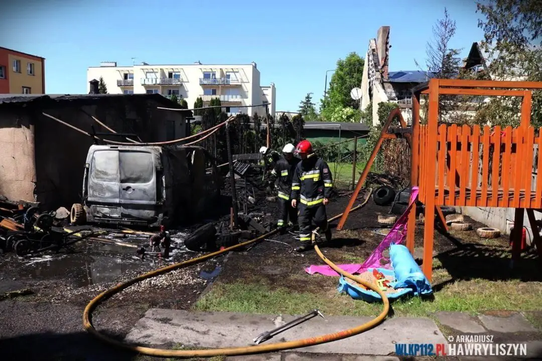 W wyniku pożaru całkowitemu spaleniu uległa wiata oraz zaparkowany pod nią samochód dostawczy oraz przylegający jeden boks garażowy z wyposażeniem. Akcja gaśnicza została zakończona po ponad dwóch godzinach działań. Według wstępnych ustaleń, prawdopodobną przyczyną powstania pożaru mogło być zwarcie instalacji elektrycznej w garażowanym pod wiatą pojeździe.