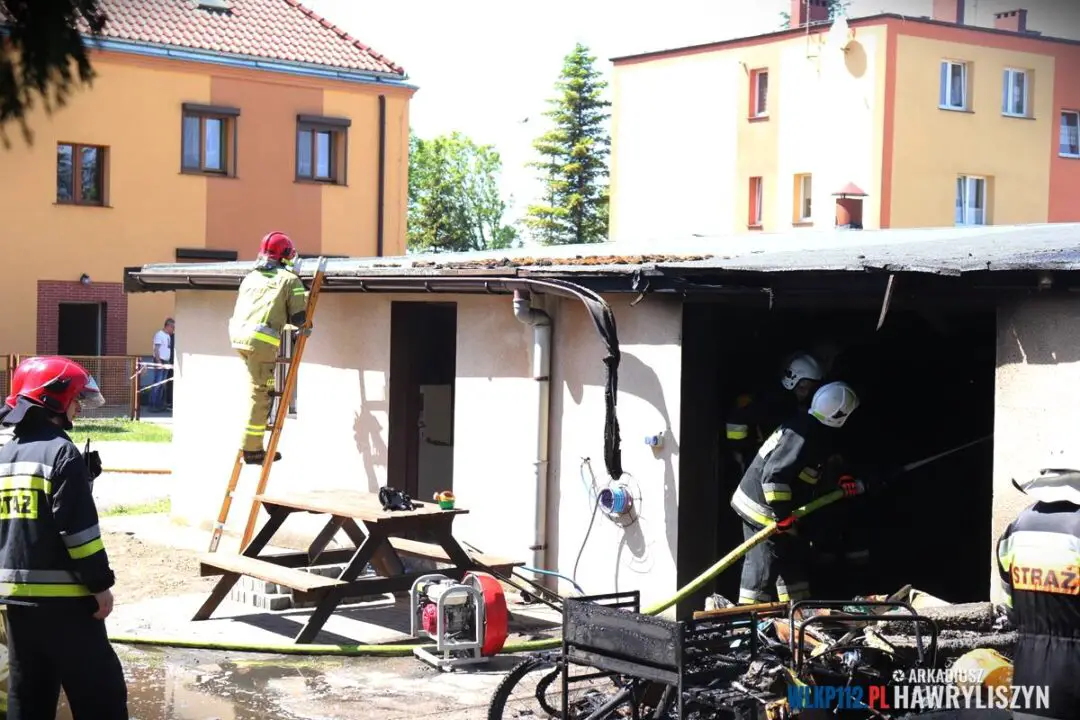 Do niebezpiecznego pożaru zabudowań doszło w niedzielę, 31 maja 2020r., około godziny 13:40, w pobliżu bloków mieszkalnych zlokalizowanych przy ulicy 5 stycznia. Czarny gęsty dym widoczny był już ze znacznej odległości.