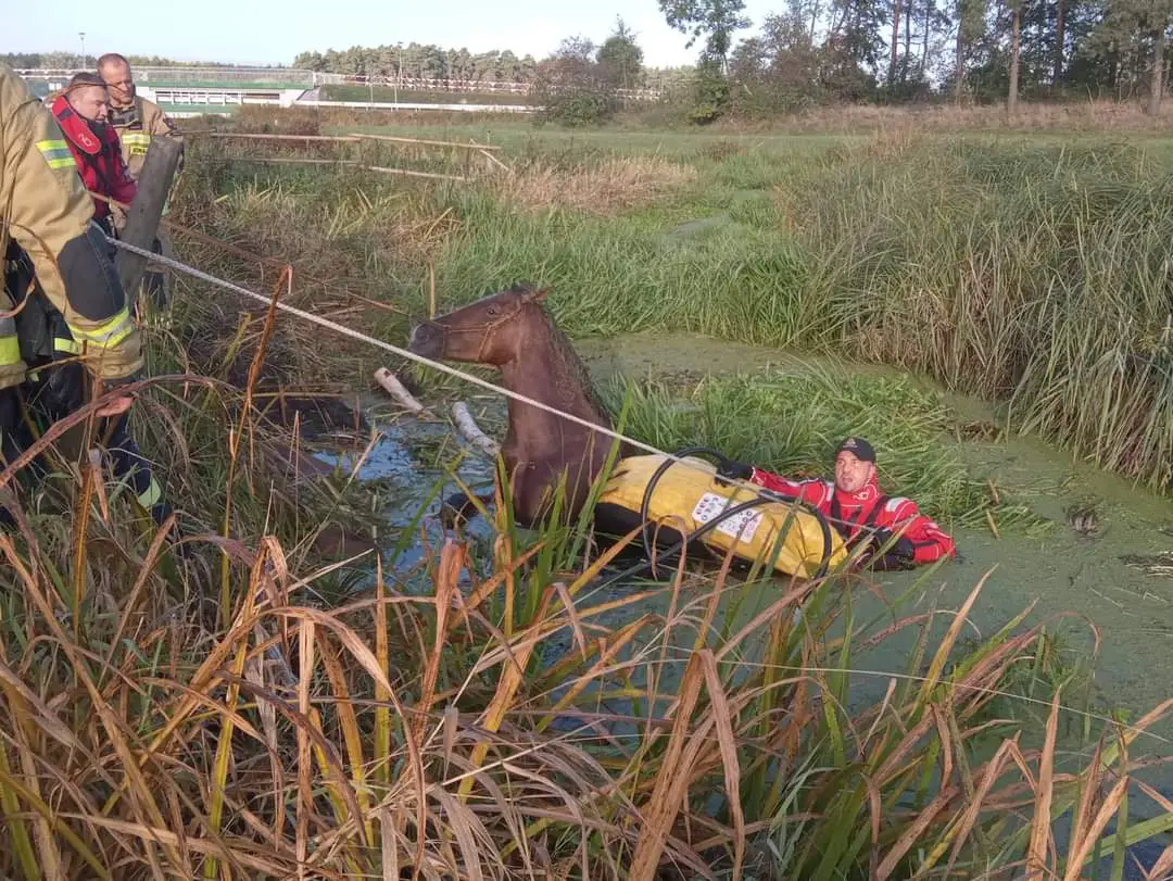 Wczoraj, w środę 28 września strażacy z JRG 6 oraz OSP Kamionki otrzymali zgłoszenie o uwięzionym koniu w rzece Głuszynka.