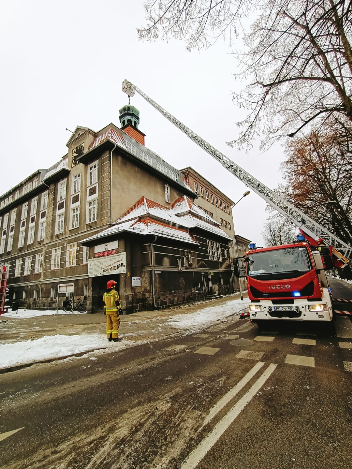 Do zdarzenia doszło 9 grudnia 2021 roku w Trzciance. Według zgłoszenia na wieży w Zespole Szkół doszło do uszkodzenia iglicy.