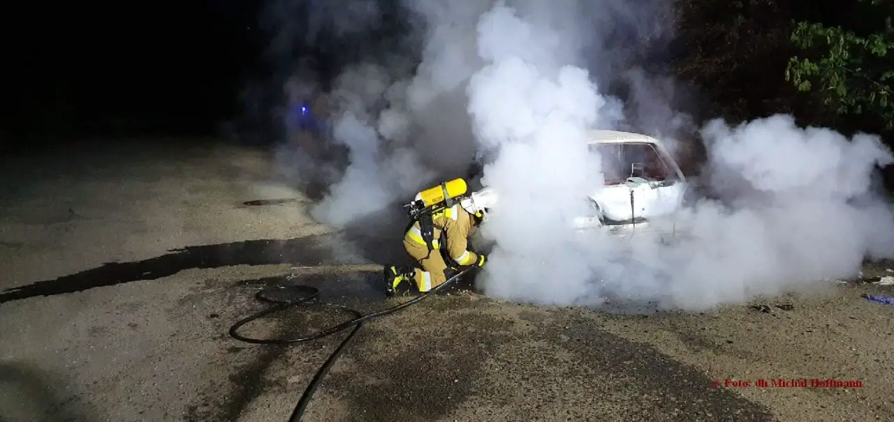 Trwa wyjaśnianie przyczyn i okoliczności nocnego pożaru samochodu osobowego na parkingu byłego zajazdu „Gawra” w Izbicach. Auta nie udało się uratować – w momencie przyjazdu strażaków całe było w płomieniach.