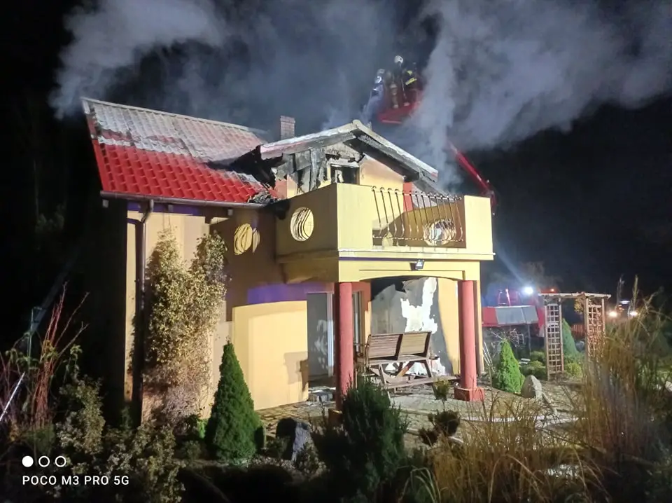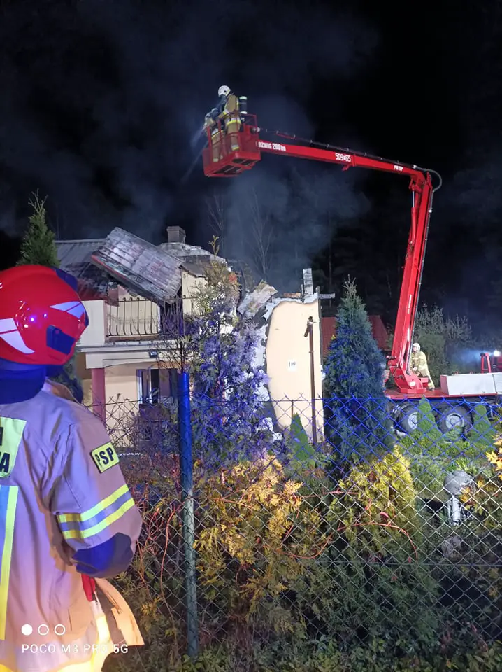 Pierwsze zastępy straży przybyłe na miejsce zdarzenia zastały rozwinięty pożar domu jednorodzinnego, płomienie wydostawały się już na zewnątrz budynku. W pożarze nikt nie ucierpiał.