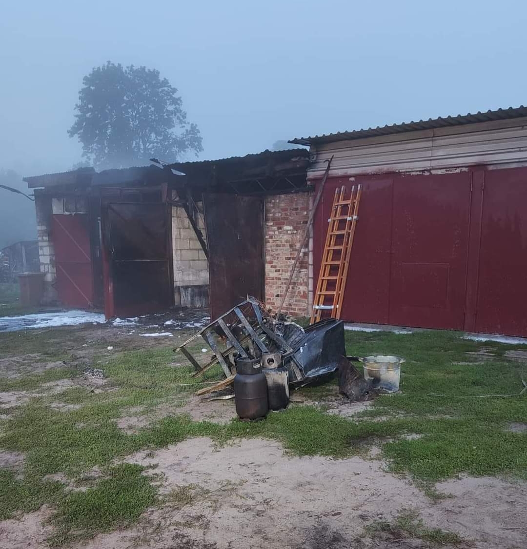 Na skutek pożaru doszczętnie spłonęły trzy motocykle, samochód, nadpalony został ciągnik rolniczy oraz budynek. W środku budynku znajdował się również sprzęt AGD, którego nie udało się uratować. Strażacy z palącego się garaży wynieśli cztery butle z gazem oraz jedną s tlenem .