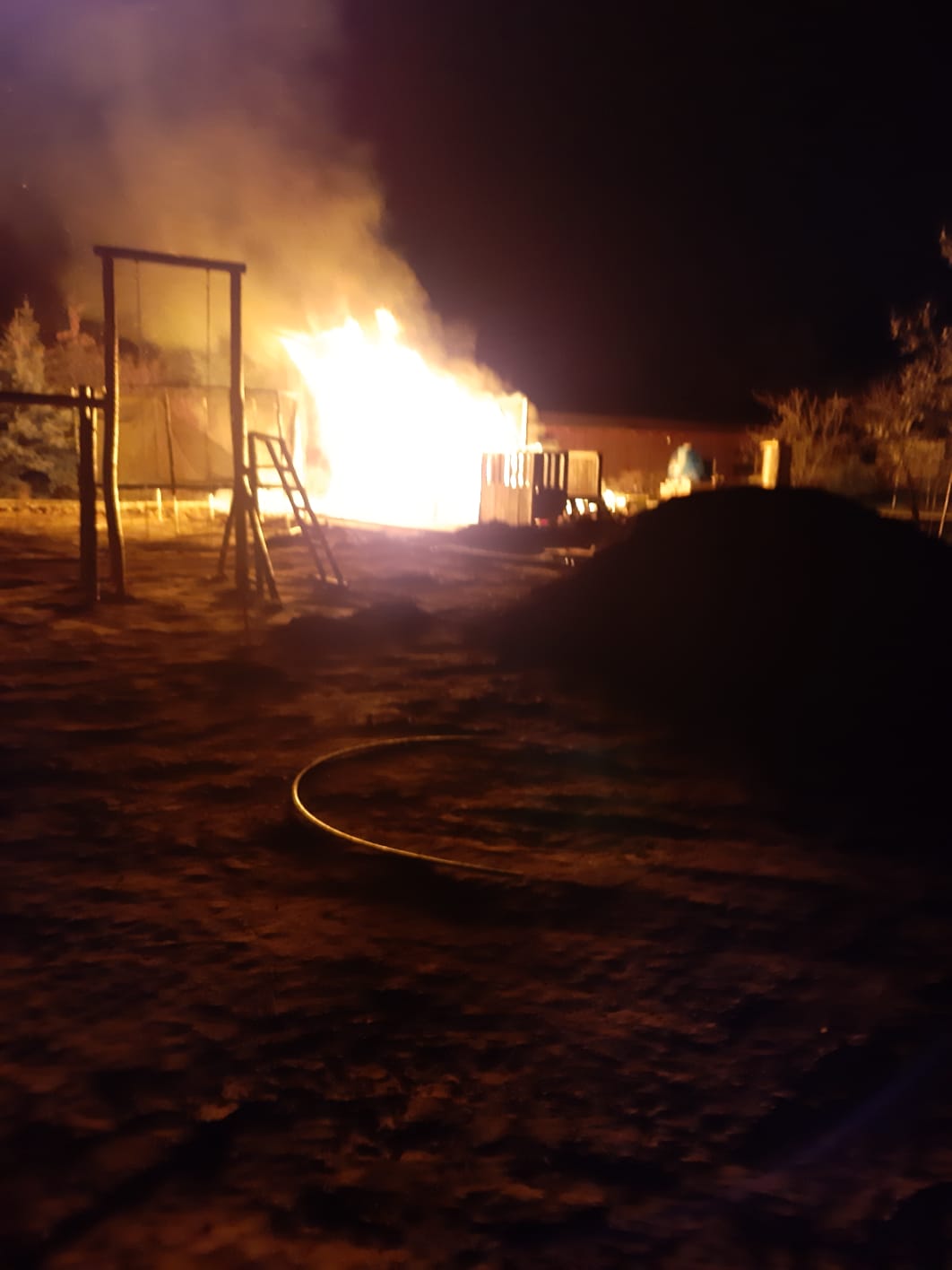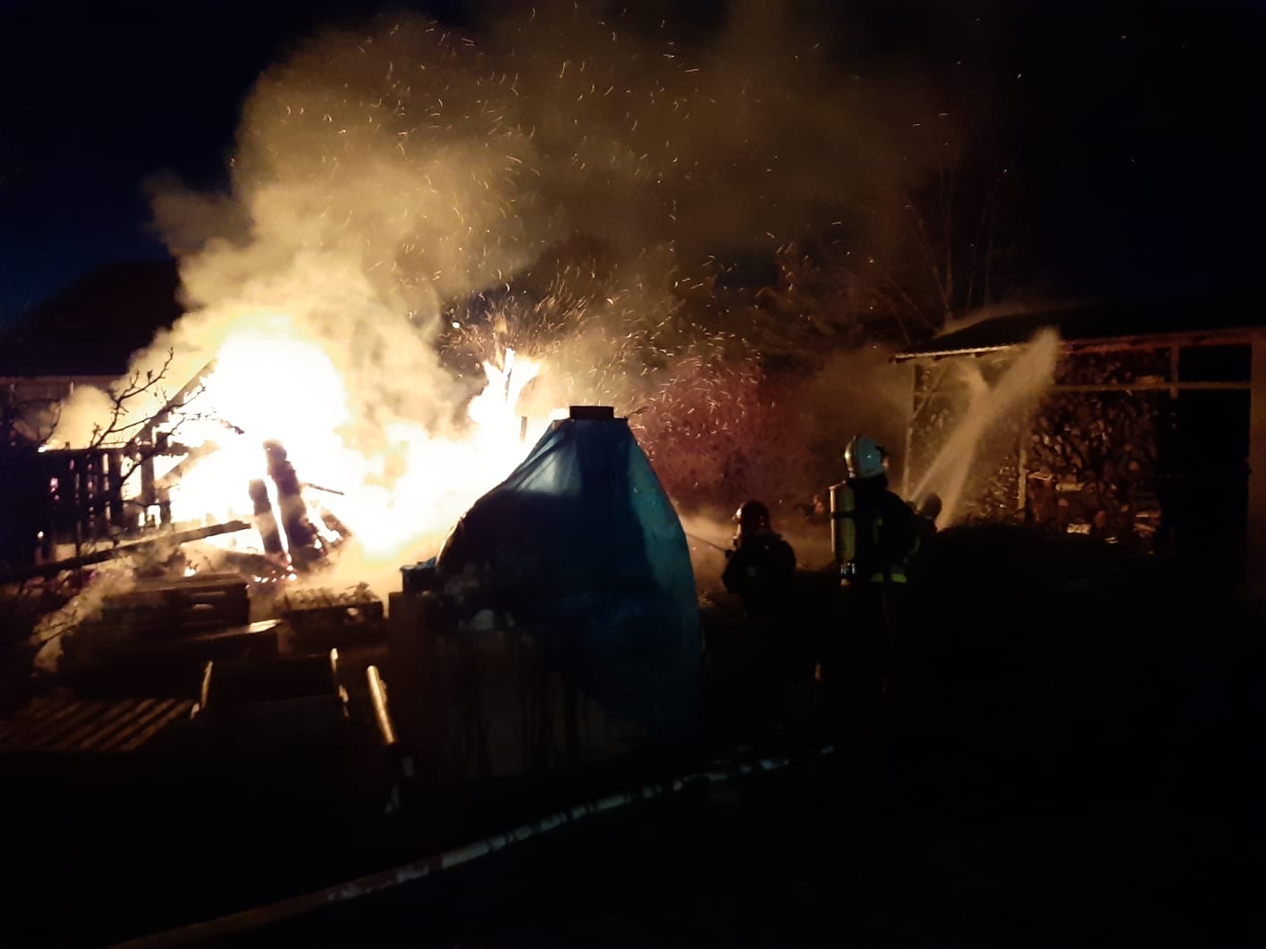 Po dotarciu pierwszych zastępów straży we wskazane miejsce zdarzenia okazało się, że pożarem objęty jest drewniany domek dla dzieci oraz drewniana wiata z drewnem. Strażacy zabezpieczyli miejsce zdarzenia, a następnie zabezpieczeni w sprzęty ODO podali jeden prąd wody w natarciu na palący się domek dla dzieci oraz dwa prądy wody, z czego jeden w obronie na drewnianą wiatę.