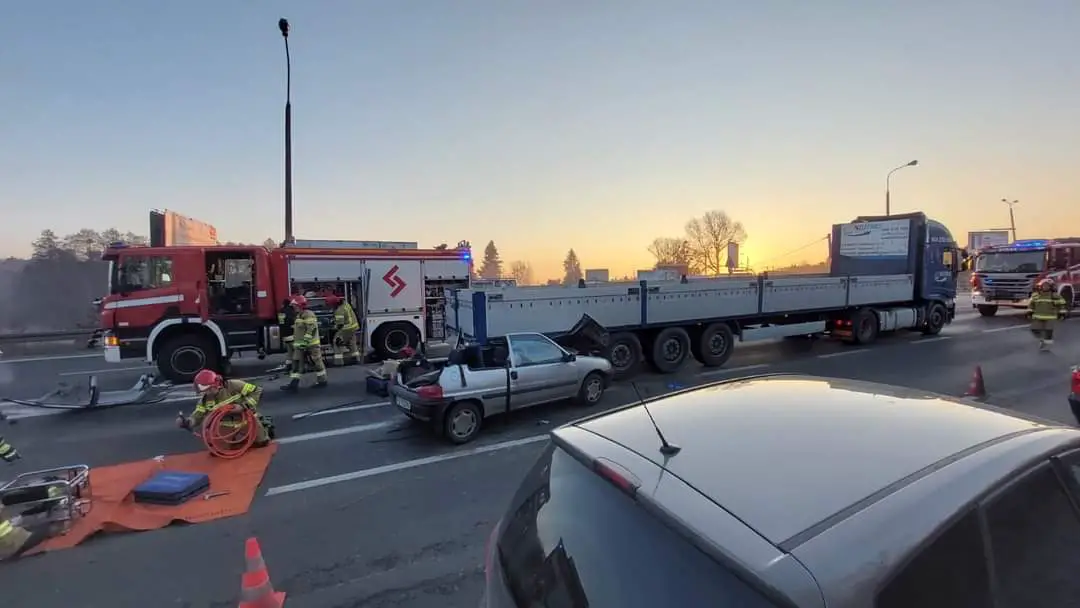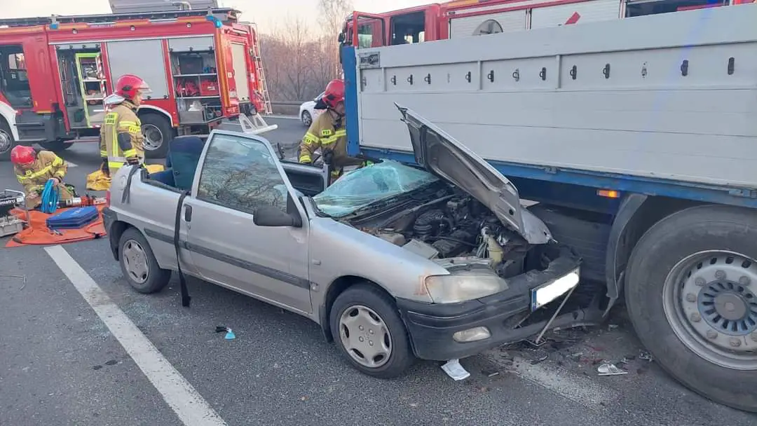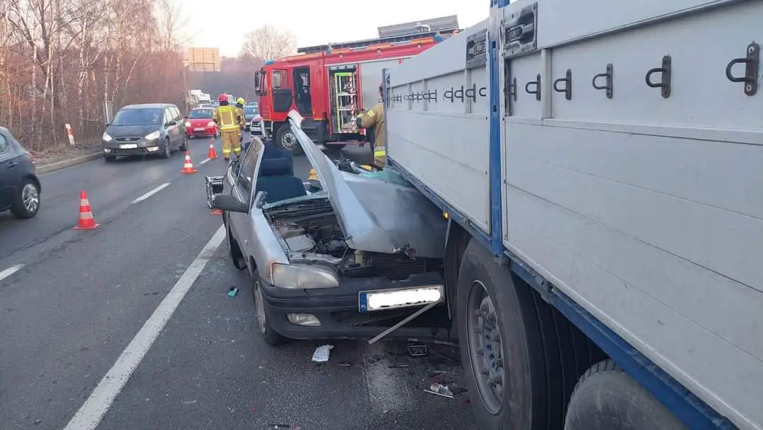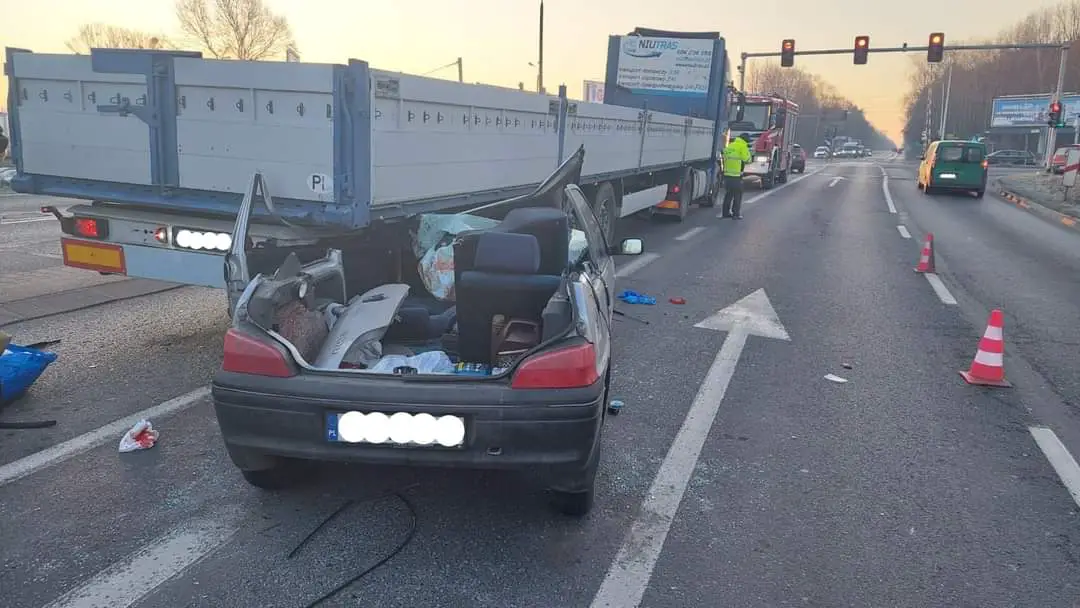 W Poznaniu mogło dojść do tragedii. Samochód osobowy wbił się w tył naczepy.