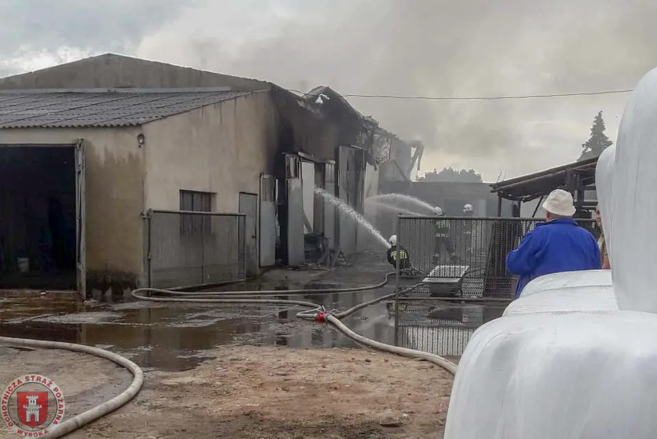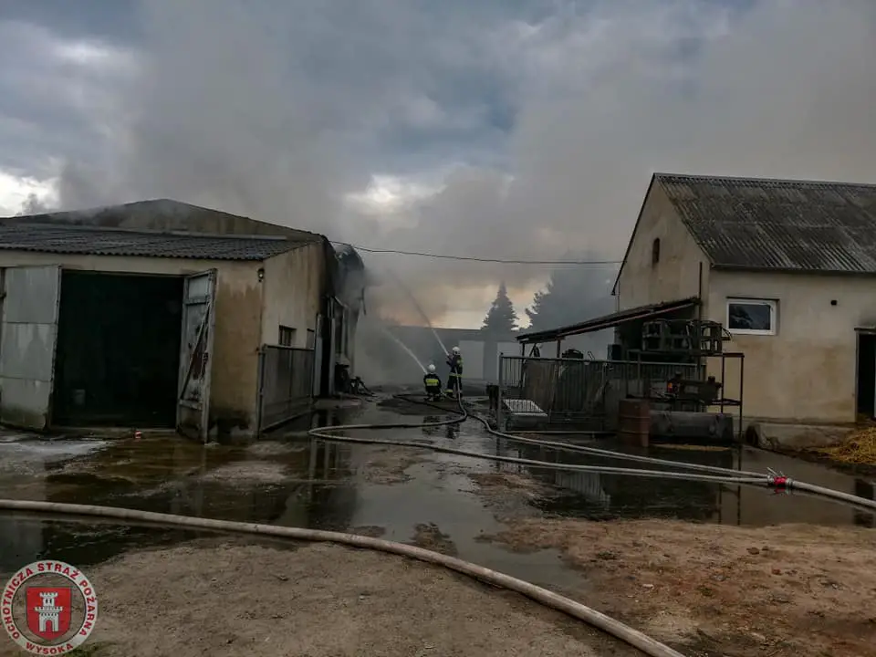 W budynkach były przechowywane zwierzęta oraz słoma, niestety nie udało się uratować kilku sztuk bydła i zostały w środku… Działania strażaków polegały na podaniu prądów wody na płonący budynek,ale pilnowali również aby objęte pożarem nie zostały budynki przylegające do tego płonącego.