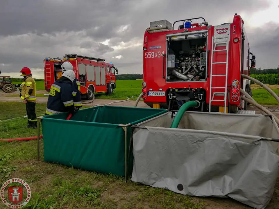 Na miejsce początkowo wezwano okoliczne jednostki straży Po dojeździe pierwszych zastępów na miejscu zastano rozwinięty pożar budynku gospodarczego. Siły i środki nie były wystarczające, więc na miejsce zdarzenia dysponowano kolejne liczne Siś PSP oraz OSP z następujących powiatów: