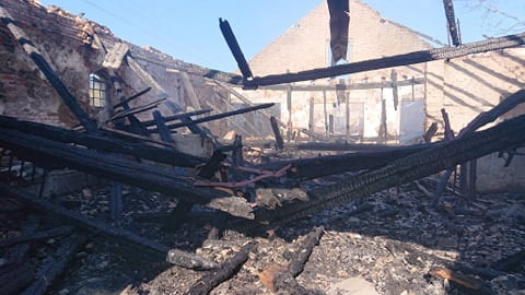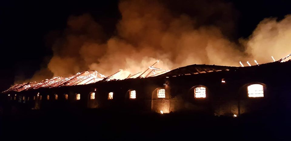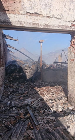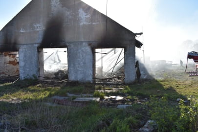 Intensywność pożaru spowodowała zawalenie się konstrukcji dachu wraz z pokryciem eternitowym do wnętrza budynku przykrywając tym samym licznie tlące się bale słomy i siana uniemożliwiając tym samym skuteczne gaszenie oraz ich usunięcie przy pomocy ciężkiego sprzętu.