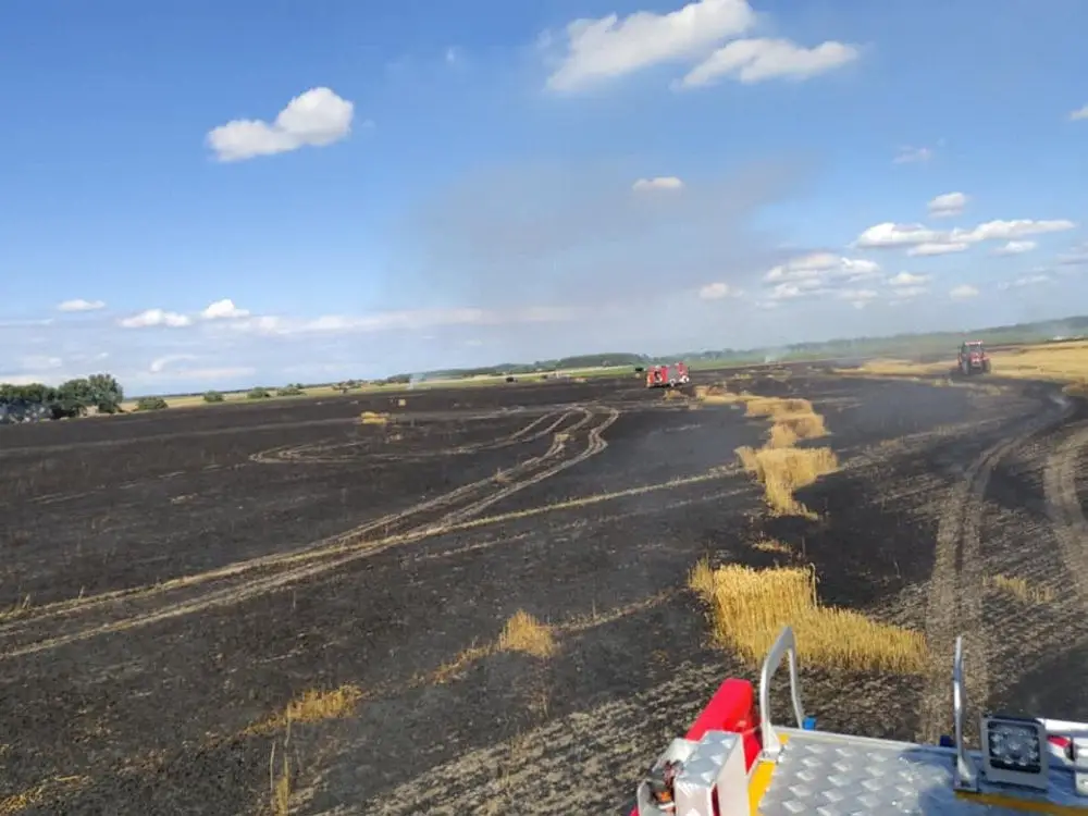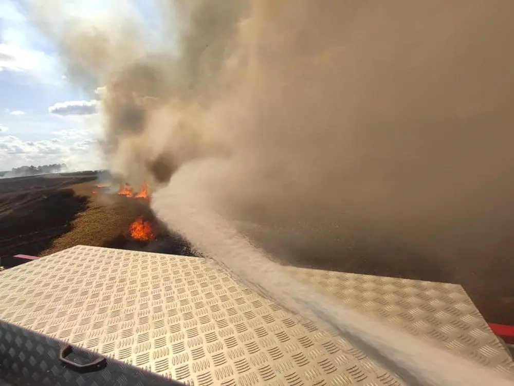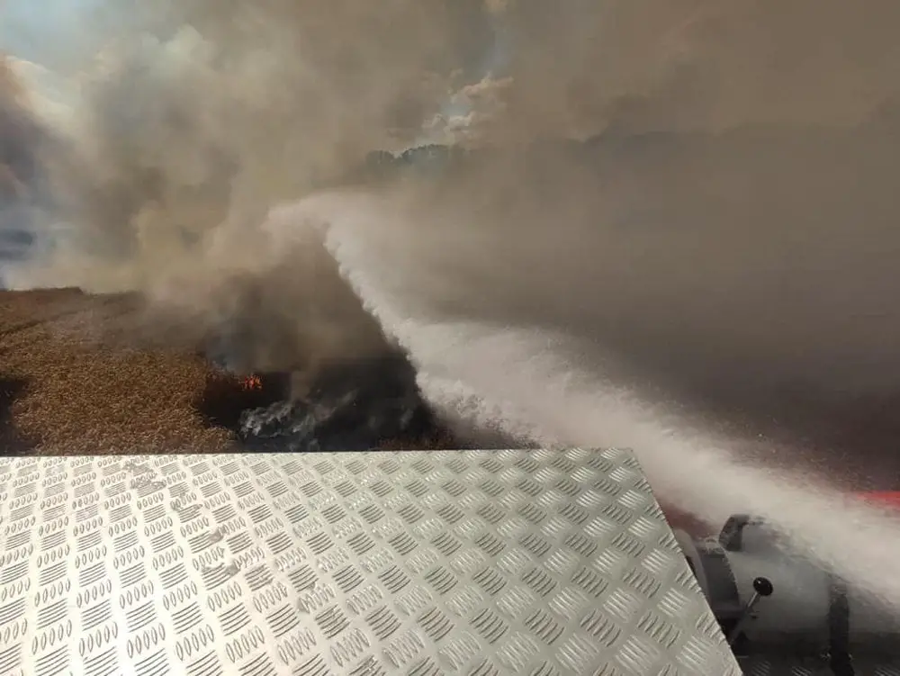 Po przybyciu na miejsce zdarzenia strażacy ustalili, że płonie około 10 hektarów zboża. Na miejsce dojeżdżały kolejnej wozy strażaków. Ruszyła walk z pożarem.
