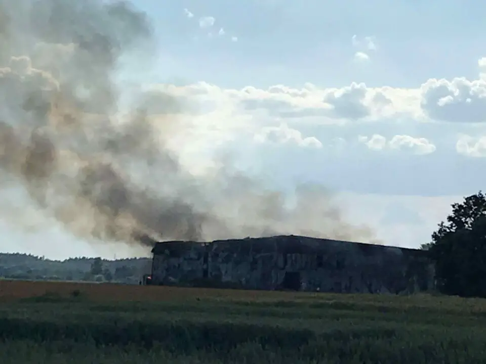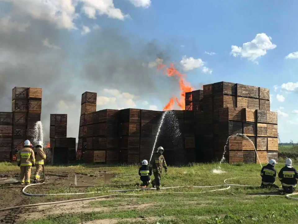 Ogromny pożar w Waszkowie. Najprawdopodobniej ogniem objęta jest cała hala. Na miejsce udają się liczne zastępy straży pożarnej.