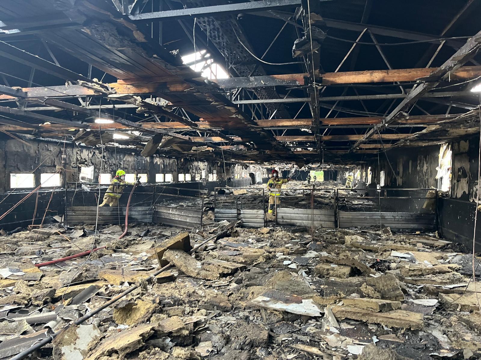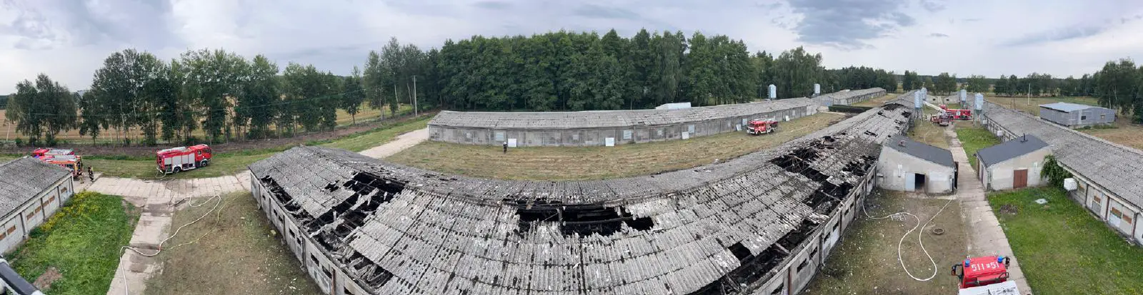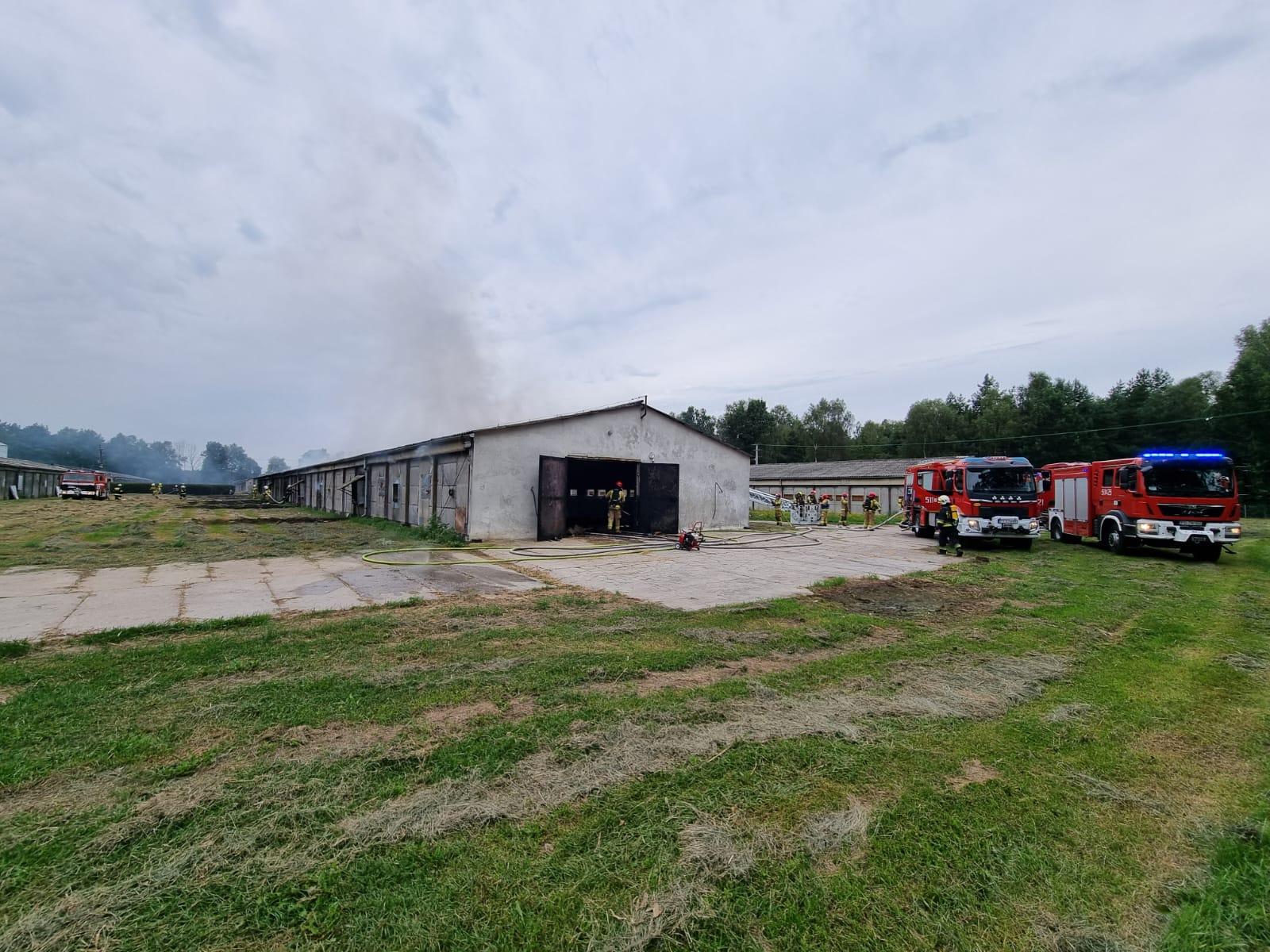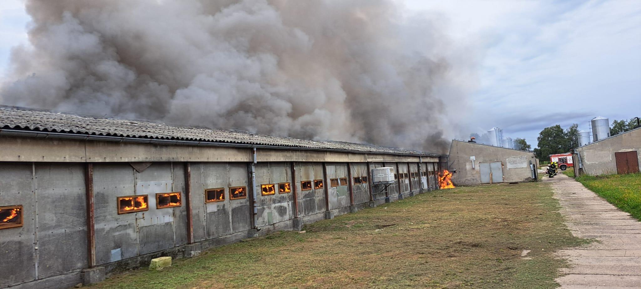 Po przybyciu zastępów straży pożarnej na miejsce zdarzenia zastano budynek inwentarski objęty w całości pożarem o wymiarach 95mx10mx5m (budynek przygotowywany do hodowli indyków bez zwierząt).