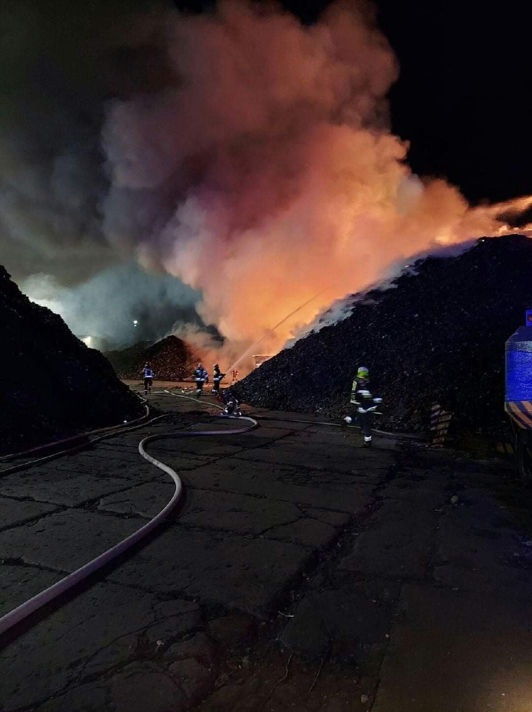 Kiedy pierwsze wozy strażackie pojawiły się na miejscu, okazało się, że palą się trzy hałdy odpadów, w których znajdowały się tworzywa sztuczne oraz materiały tapicerskie i różnego rodzaju pianki.