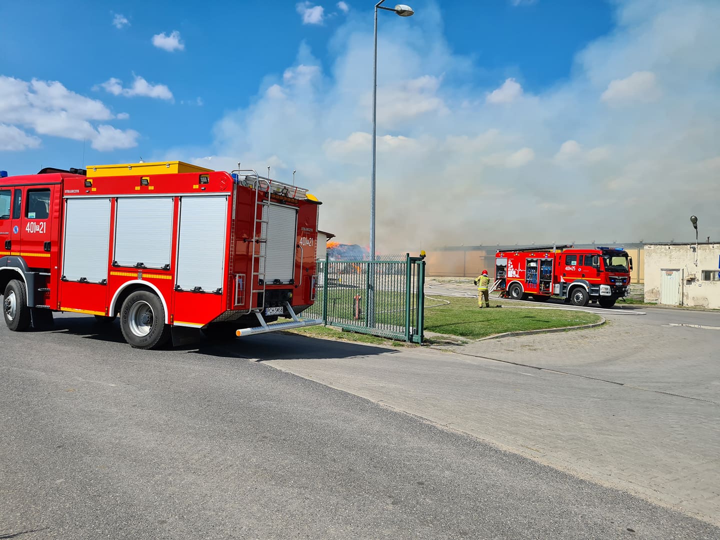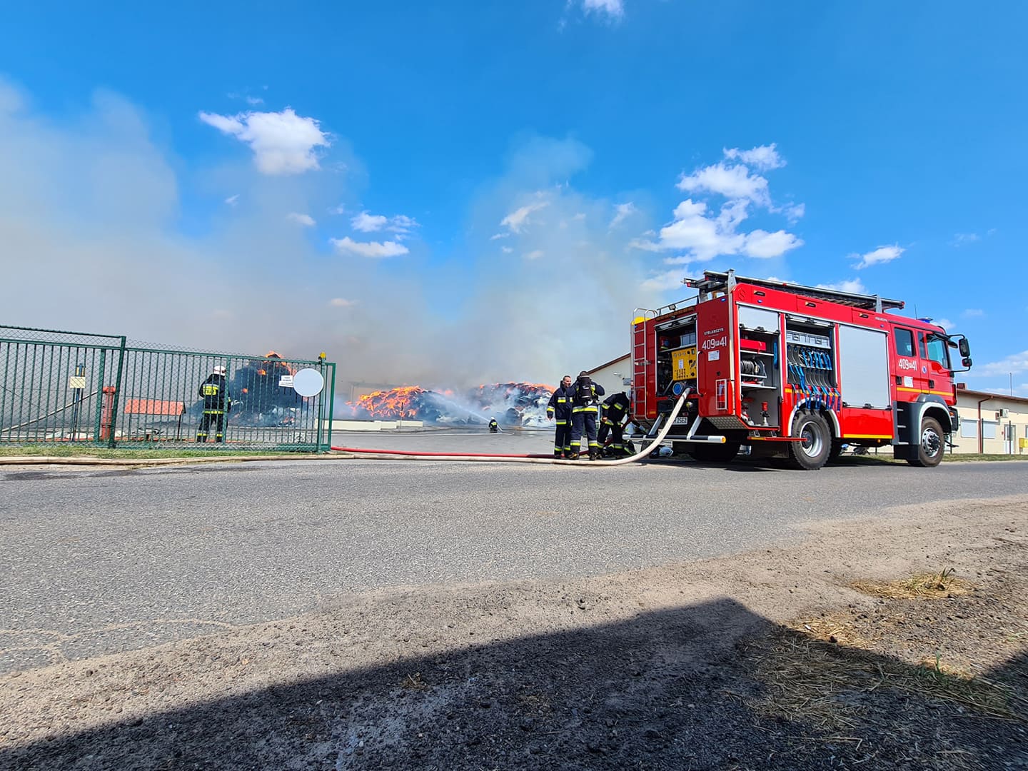 Do działań w pierwszym rzucie zadysponowano kilka zastępów straży pożarnej.Z dużej odległości widoczne było zadymienie co świadczyło o dużym i szybko rozprzestrzeniającym się pożarze. Zadysponowane w pierwszym rzucie siły i środki zastępów straży pożarnej były niewystarczające.