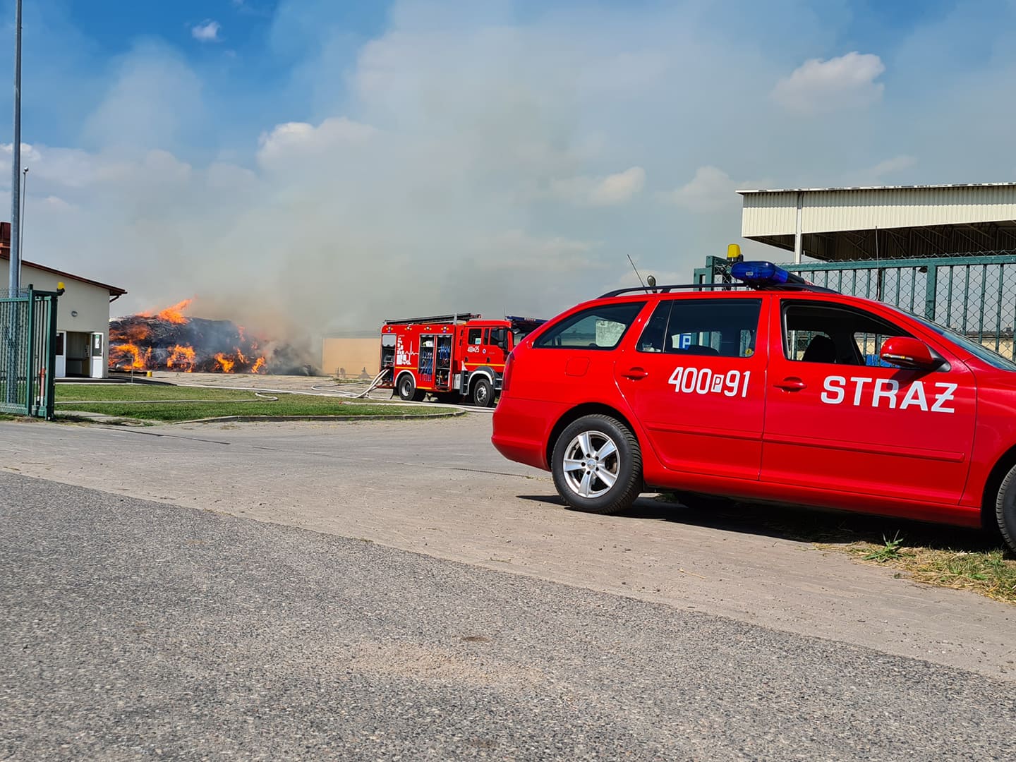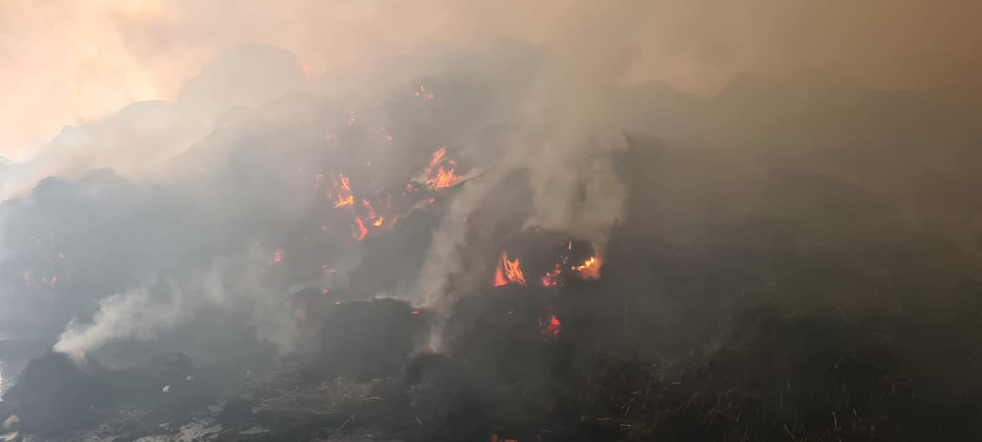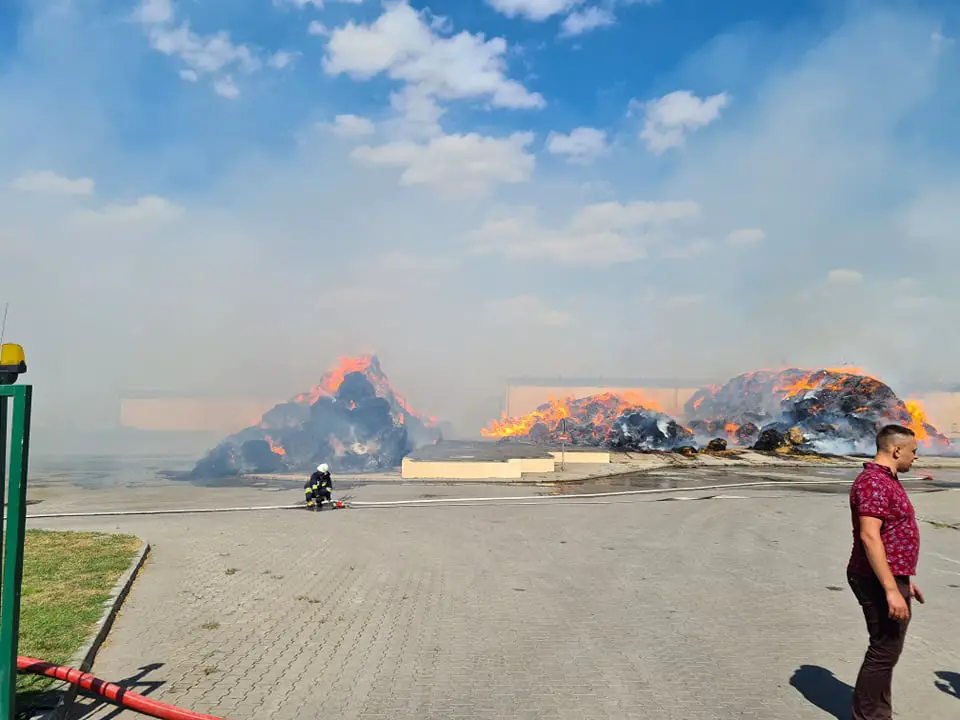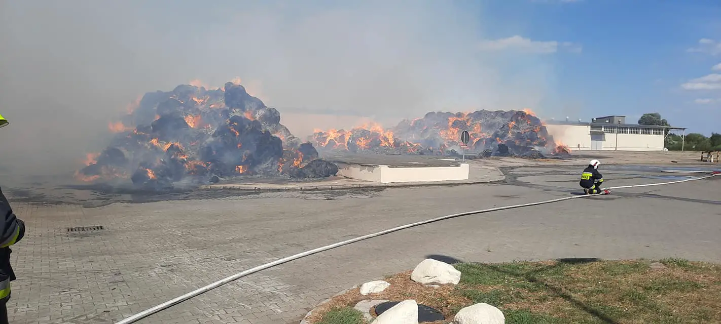 Całkowitemu spaleniu uległy 3 duże stogi słomy oraz wnętrze hali.
