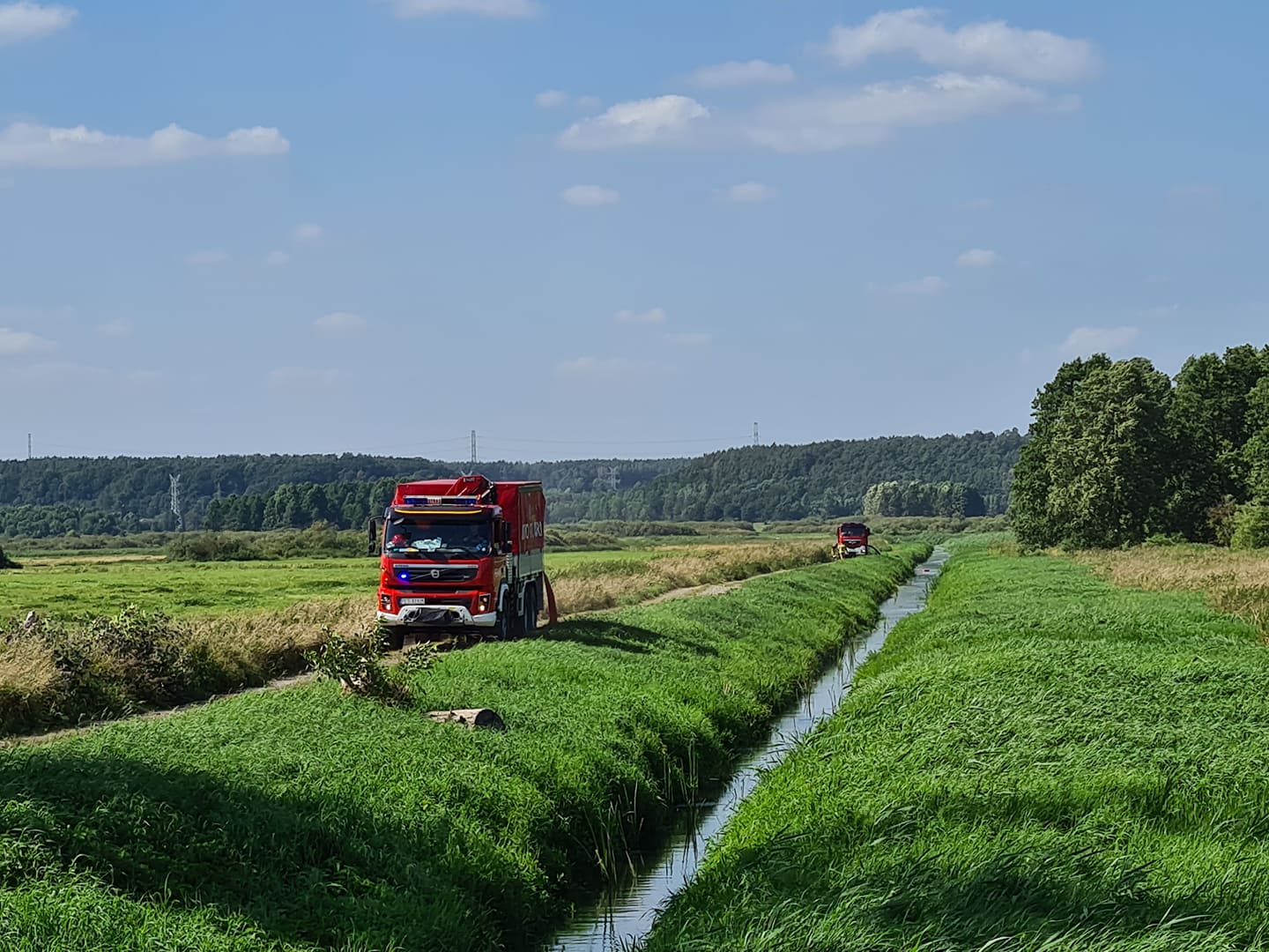 Około godziny 20:30 na miejsce działań zadysponowane zostały dwa zastępy straży pożarnej z OSP Chodzież oraz zastęp z OSP Podstolice. Ich celem było wspomóc pracujących od kilku godzin strażaków w dogaszaniu pogorzeliska oraz w końcowej fazie działań pomóc w zwinięciu magistrali wodnej.