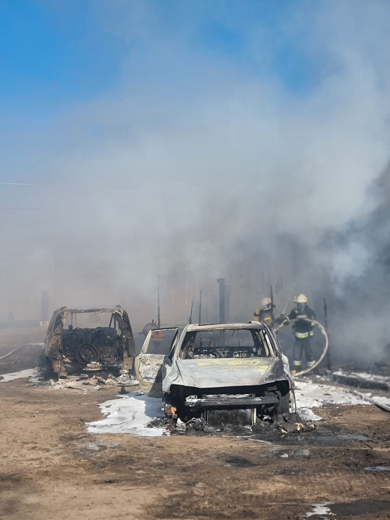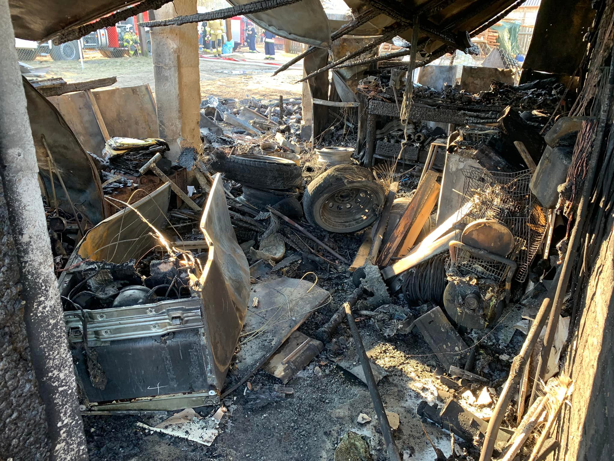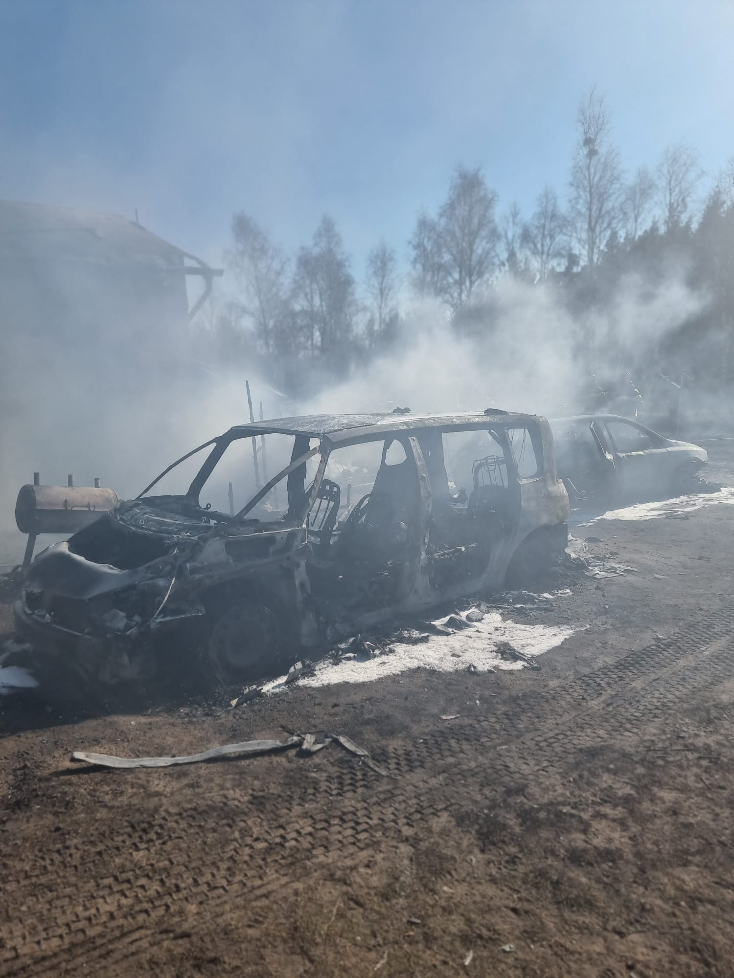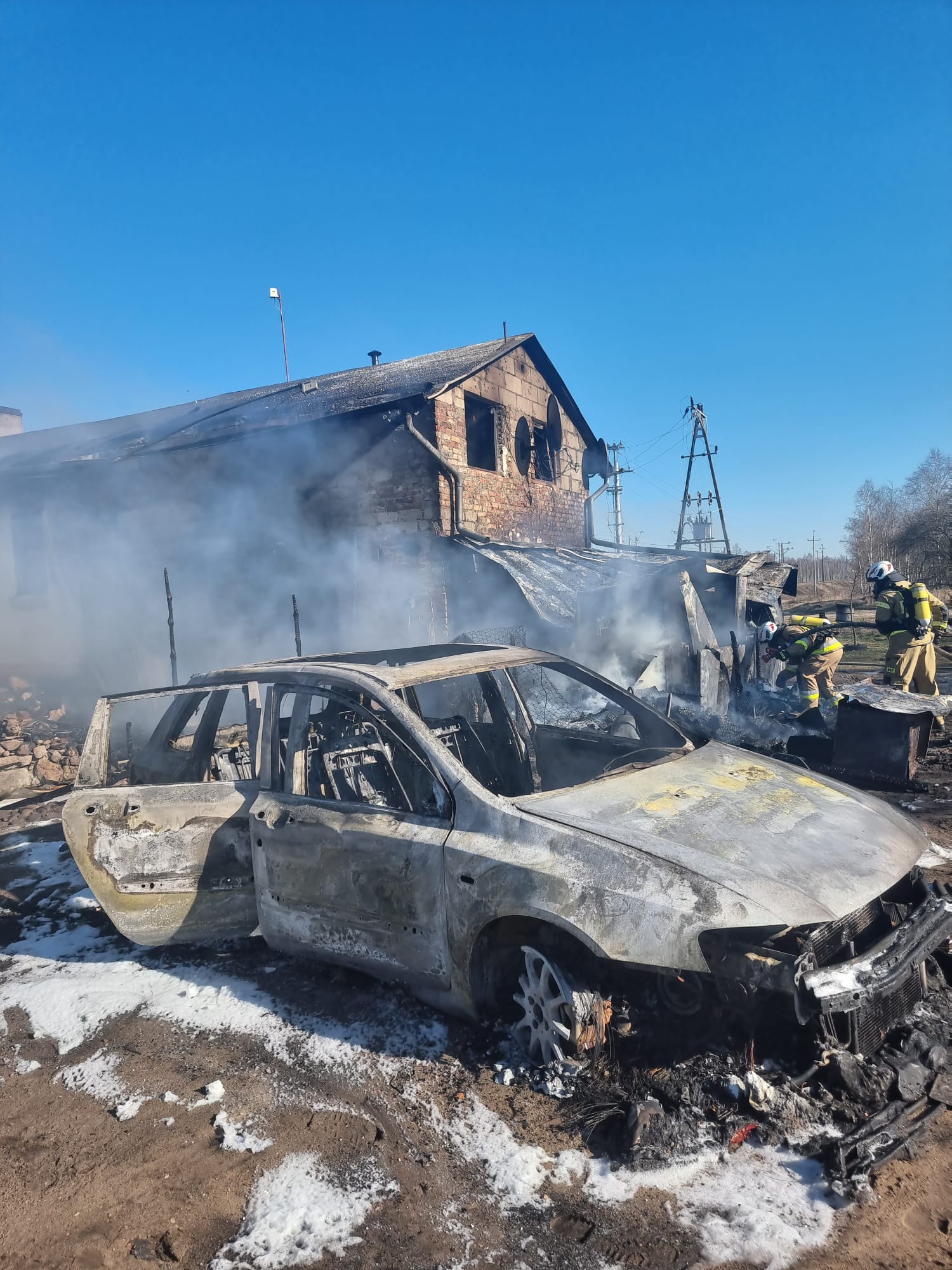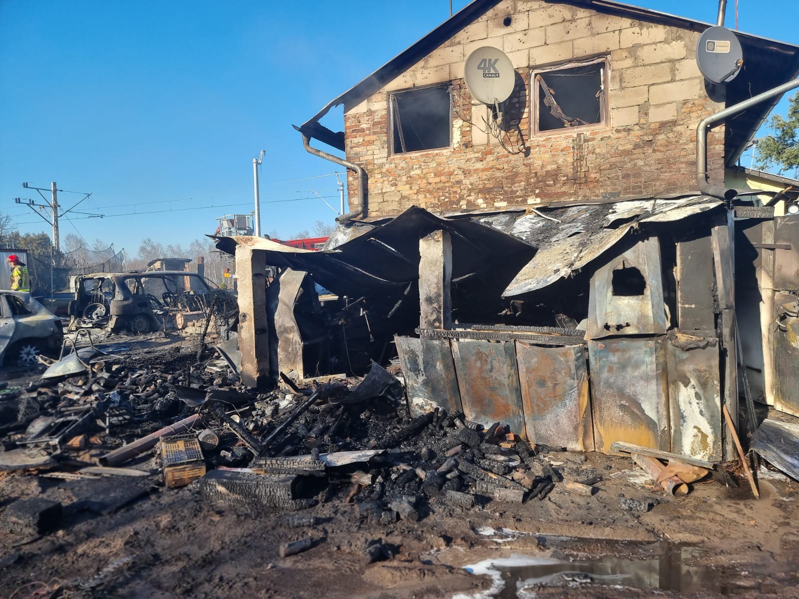 Spaleniu uległo jedno mieszkanie z wyposażeniem, budynek gospodarczy z wyposażeniem, część dachu budynku oraz dwa samochody osobowe.