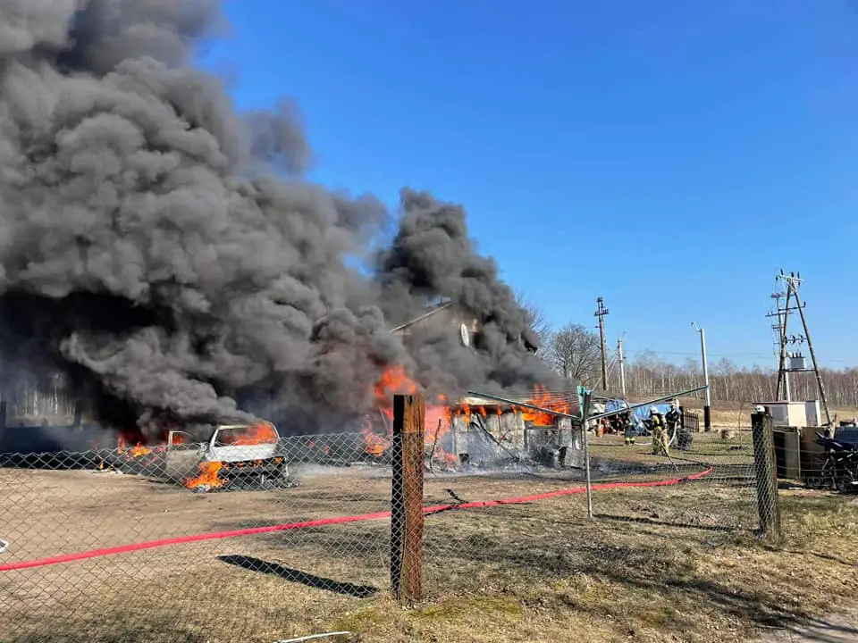 Po dojeździe na miejsce zdarzenia strażacy zastali pożar budynku mieszkalnego, gospodarczego oraz dwóch samochodów osobowych, które znajdowały się na posesji. Mieszkańcy opuścili budynek przed przybyciem SP i znajdowali się w pobliżu.