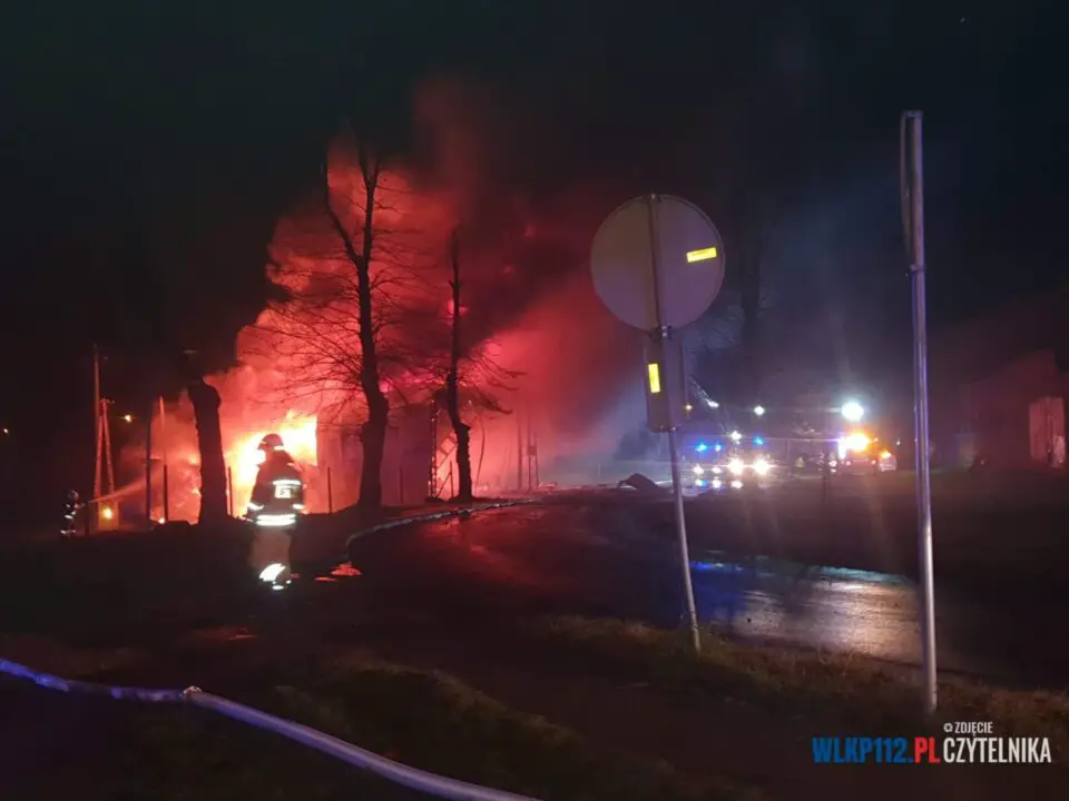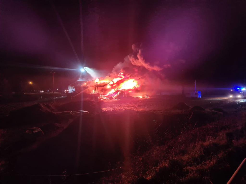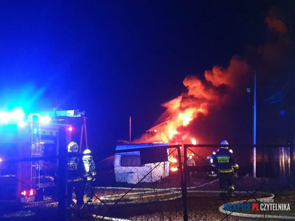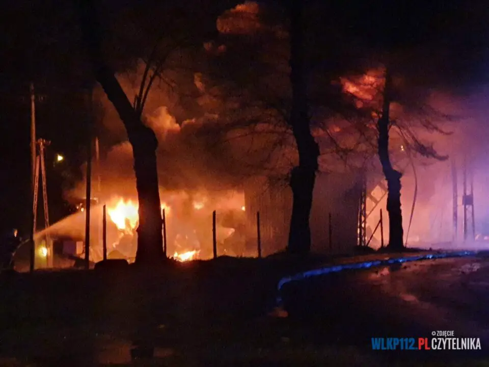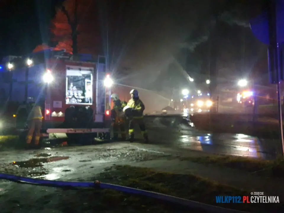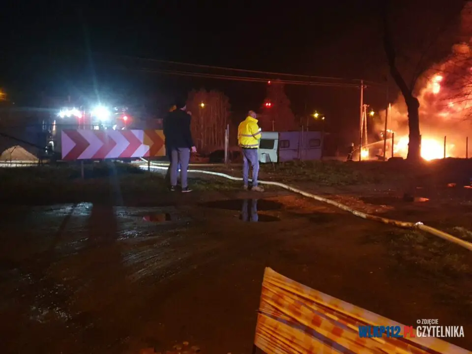 W momencie przybycia pierwszych zastępów na miejsce pożaru ogniem objęta była wiata, budynek oraz składowane na placu opony. Pożar był rozwinięty, a działania utrudniały wysokie płomienie, silne oddziaływanie cieplne oraz zadymienie. Działania jednostek ochrony przeciwpożarowej polegały na zabezpieczeniu miejsca zdarzenia, oświetleniu terenu akcji oraz podaniu prądów wody i piany zarówno w natarciu na ognisko pożaru jaki i obronie zagrożonej części obiektu. Ze względu na wybuch jaki miał miejsce w początkowej fazie działań na terenie pożaru działania gaśnicze prowadzono z zachowaniem bezpiecznej odległości. Podczas działań z obiektu wyniesiono butle z gazami technicznymi. Zbudowano również punkt czerpania wody z pobliskiego stawu.