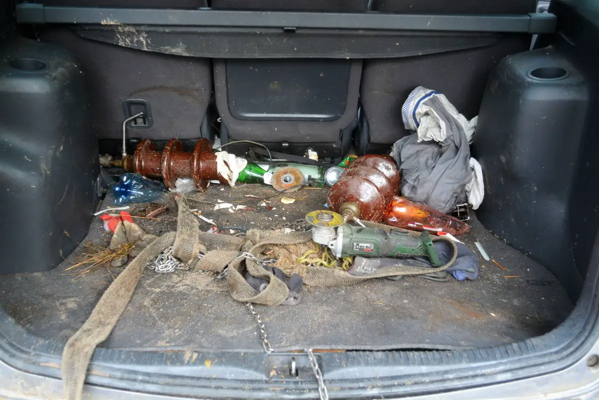 Policjanci sprawdzili samochód uciekinierów i wówczas okazało się, że w bagażniku znajdują się porcelanowe elementy transformatora oraz sprzęt do cięcia metalu. Ponadto do pojazdu doczepiony był łańcuch i pas transportowy, który ciągnął się z tyłu auta.